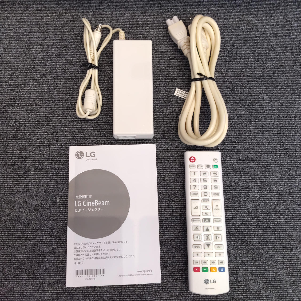 ・化粧箱・取扱説明書・接続ケーブル・リモコン |
