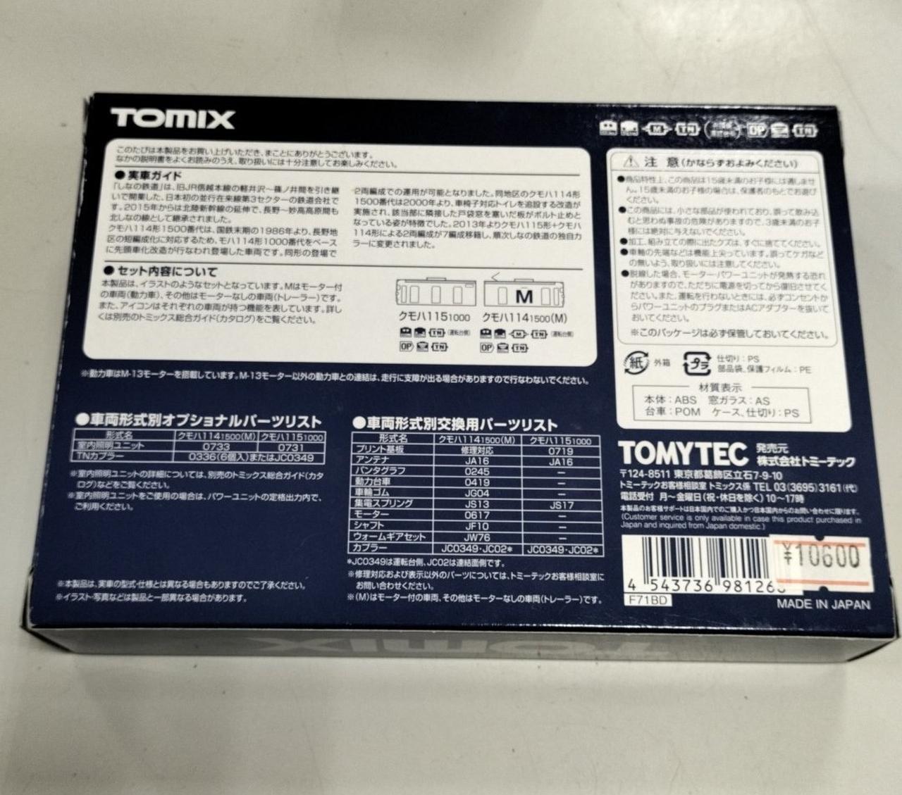 化粧箱、車両2両、取扱説明書、付属パーツ(一部使用済み) |