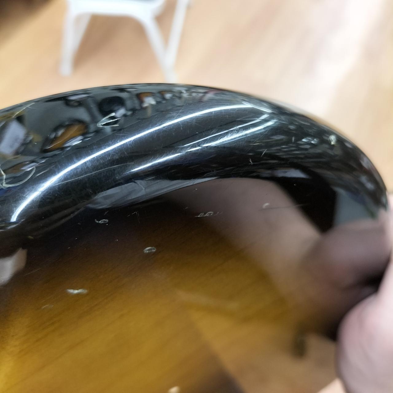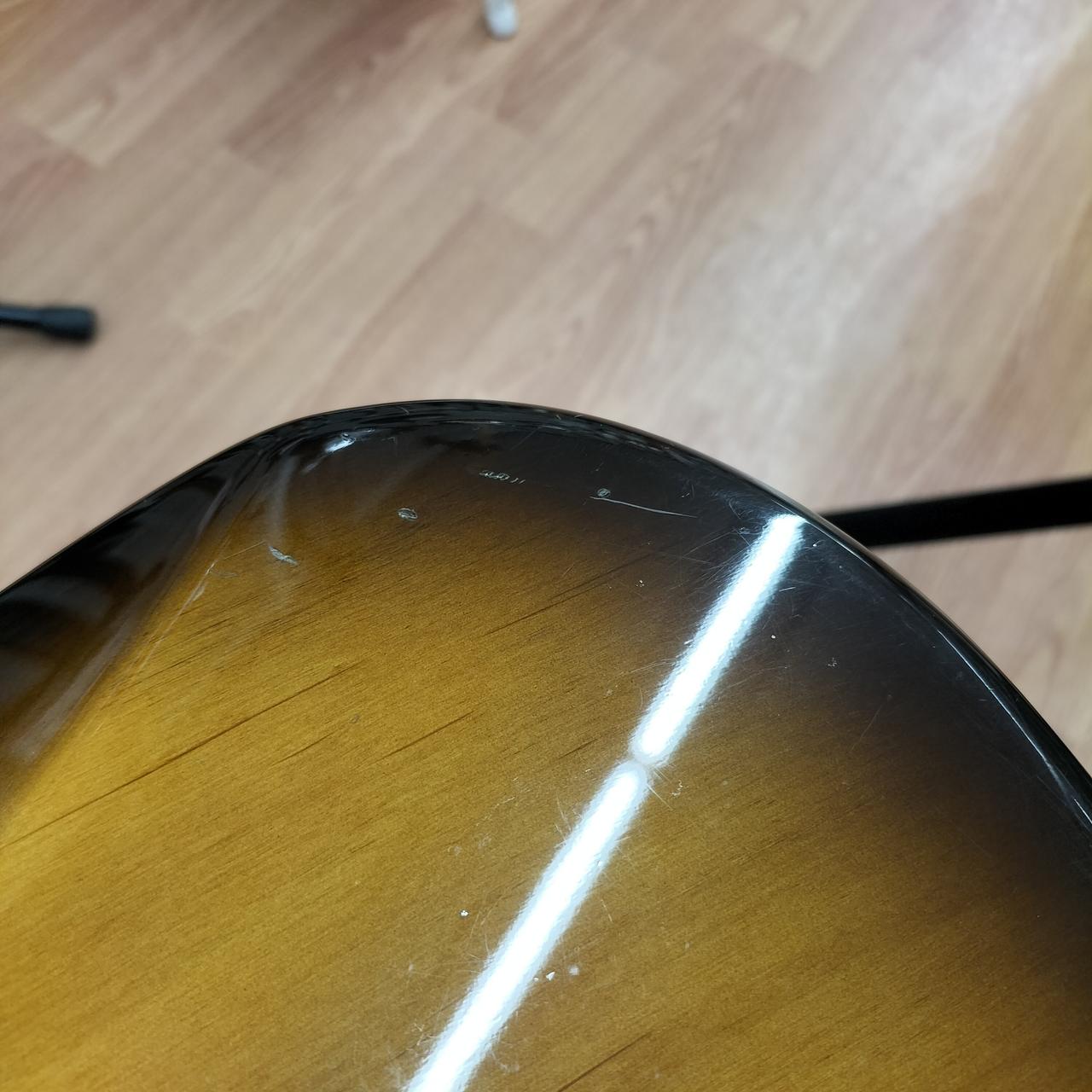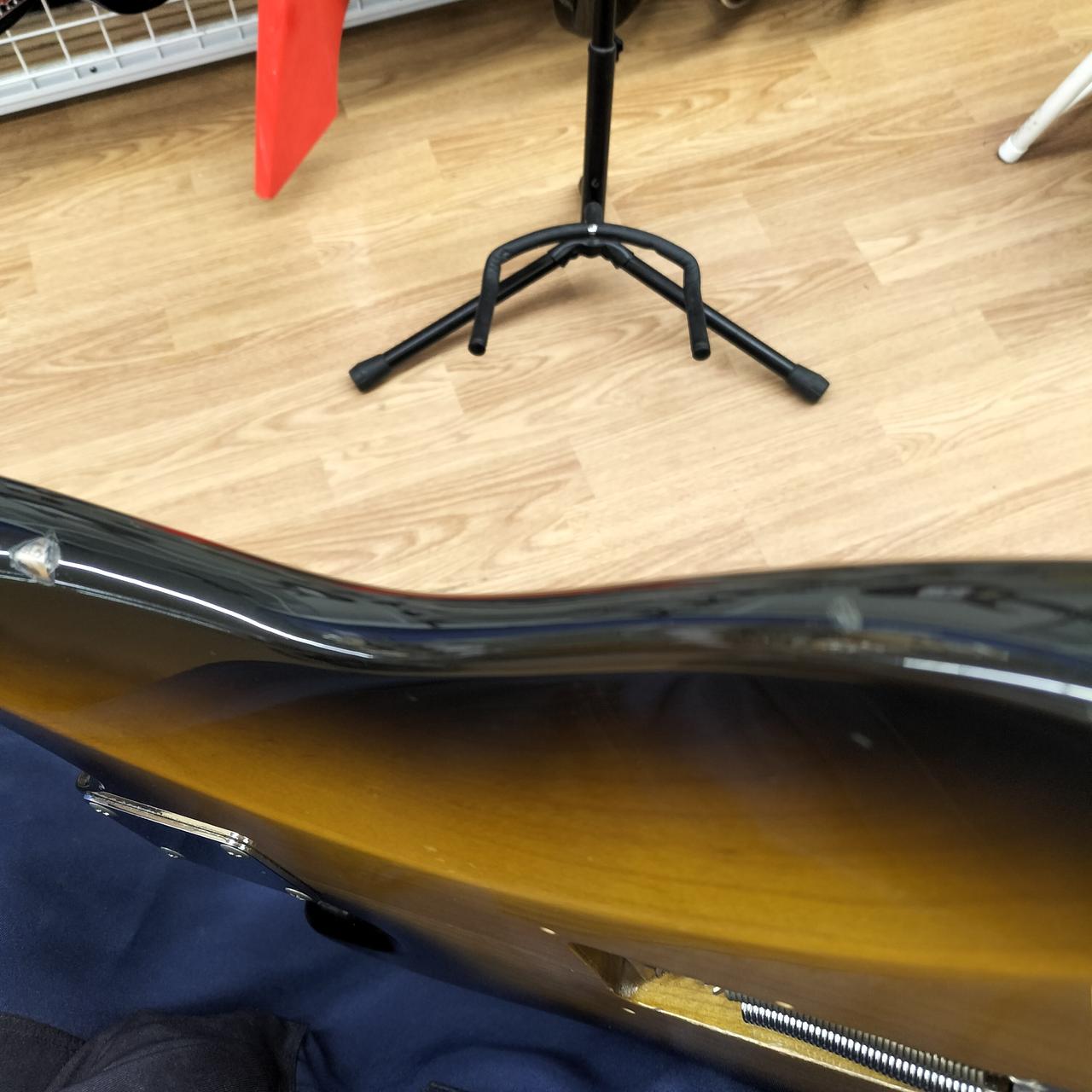 全体的に打痕あり。5.6弦のサドルのイモネジ穴がつぶれているため弦高調整できません。ピックガードにコントロール用の穴があります。おそらくPU交換されてます。蝋引きワイヤーで品質の良いものに見えます。 |