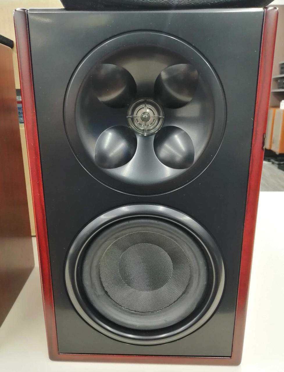 周波数帯域:82Hz~23kHz インピーダンス:8Ω 音圧レベル:92dB アメリカのオーディオ機器メーカーで作られたブックシェルフスピーカー。シックな色合いなので落ち着いた雰囲気の部屋にもぴったり |