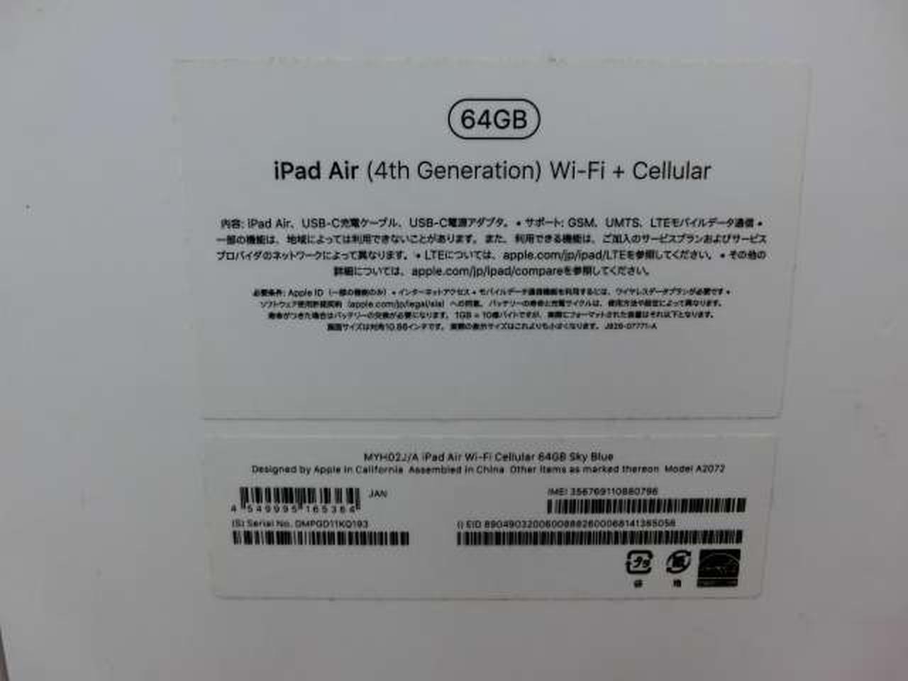 10.9型Liquid Retinaディスプレイ搭載の「iPad Air」(容量64GB・Wi-Fi+Cellularモデル)。 |