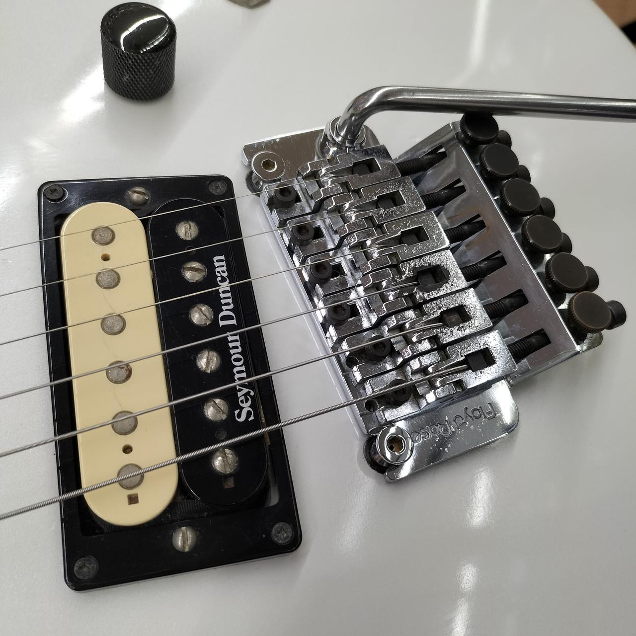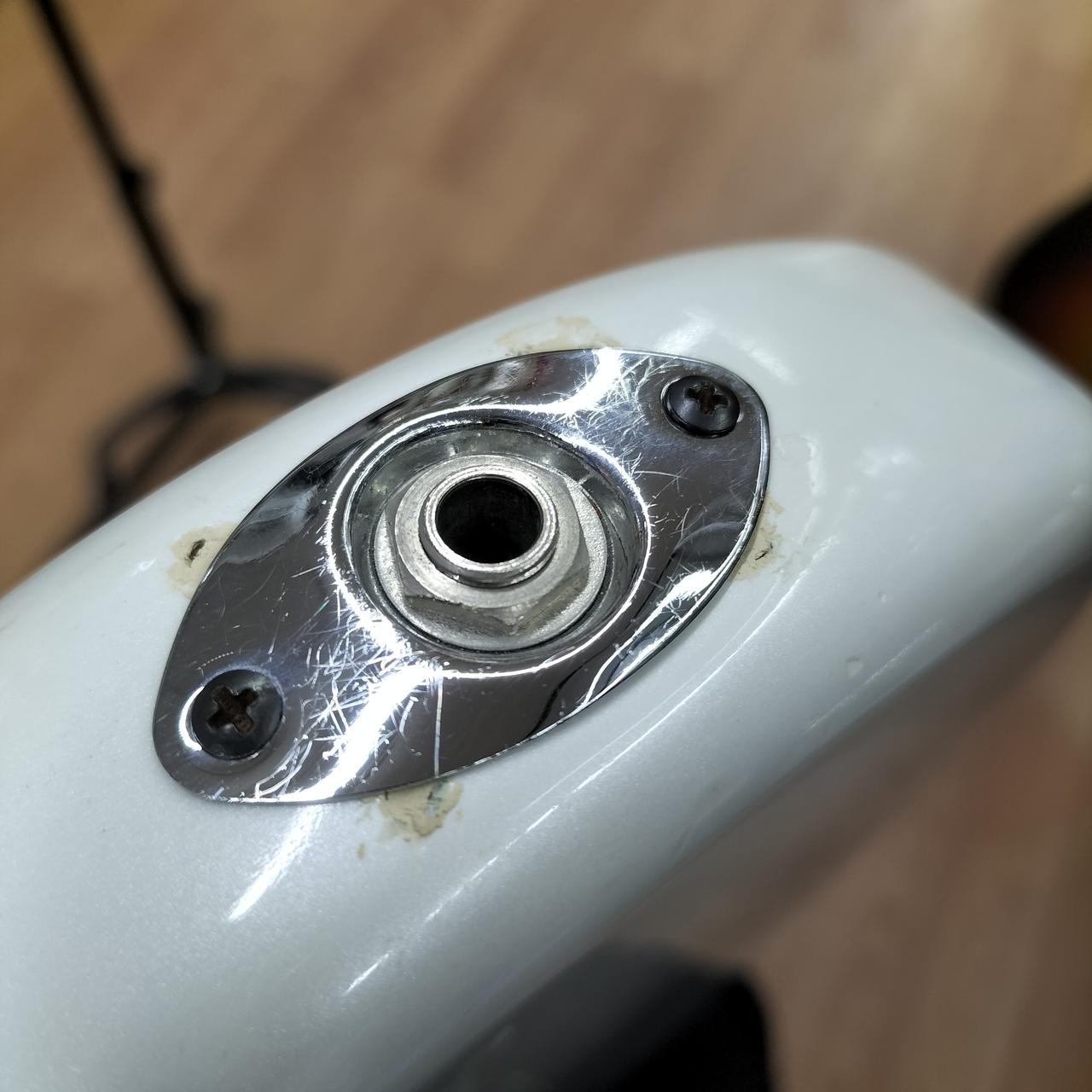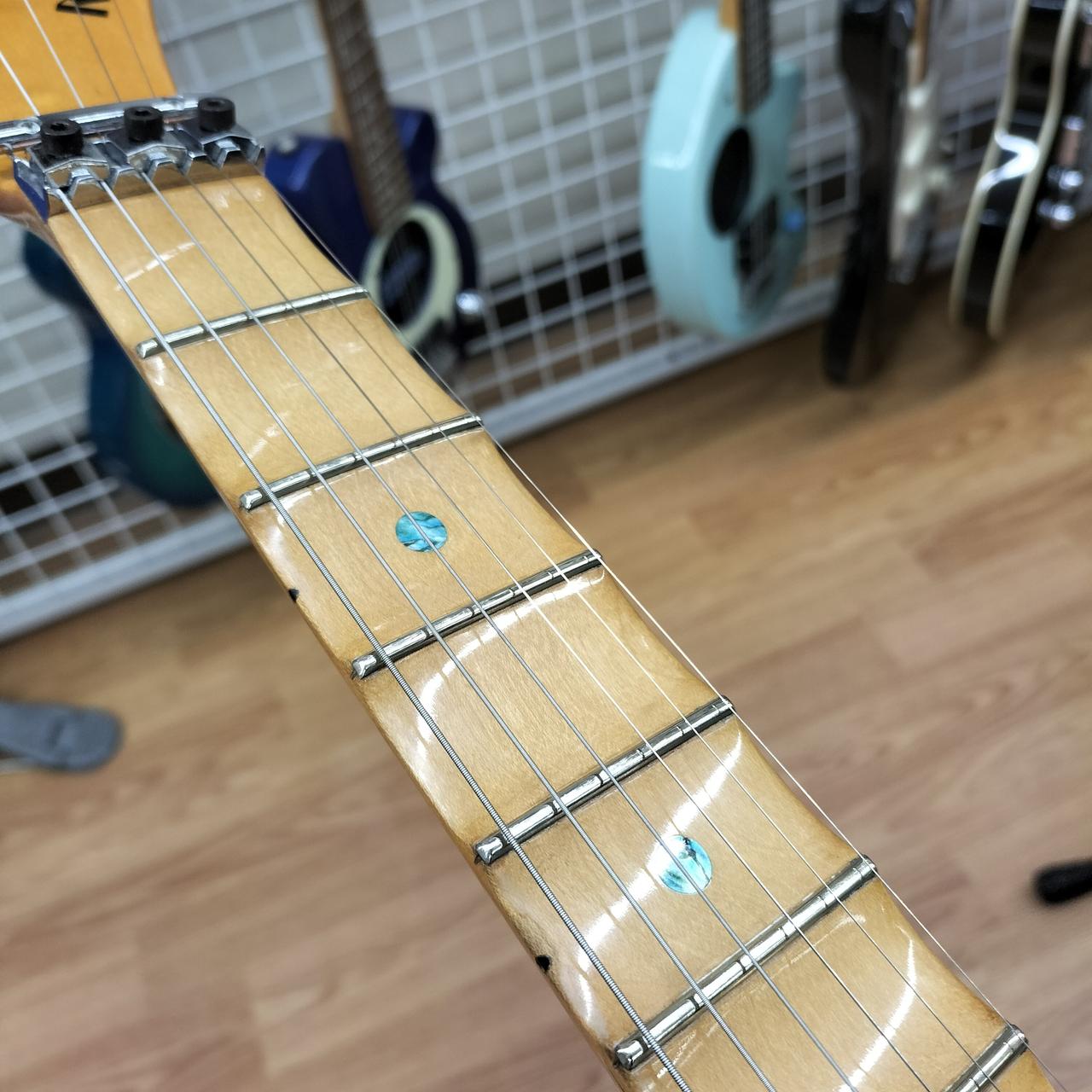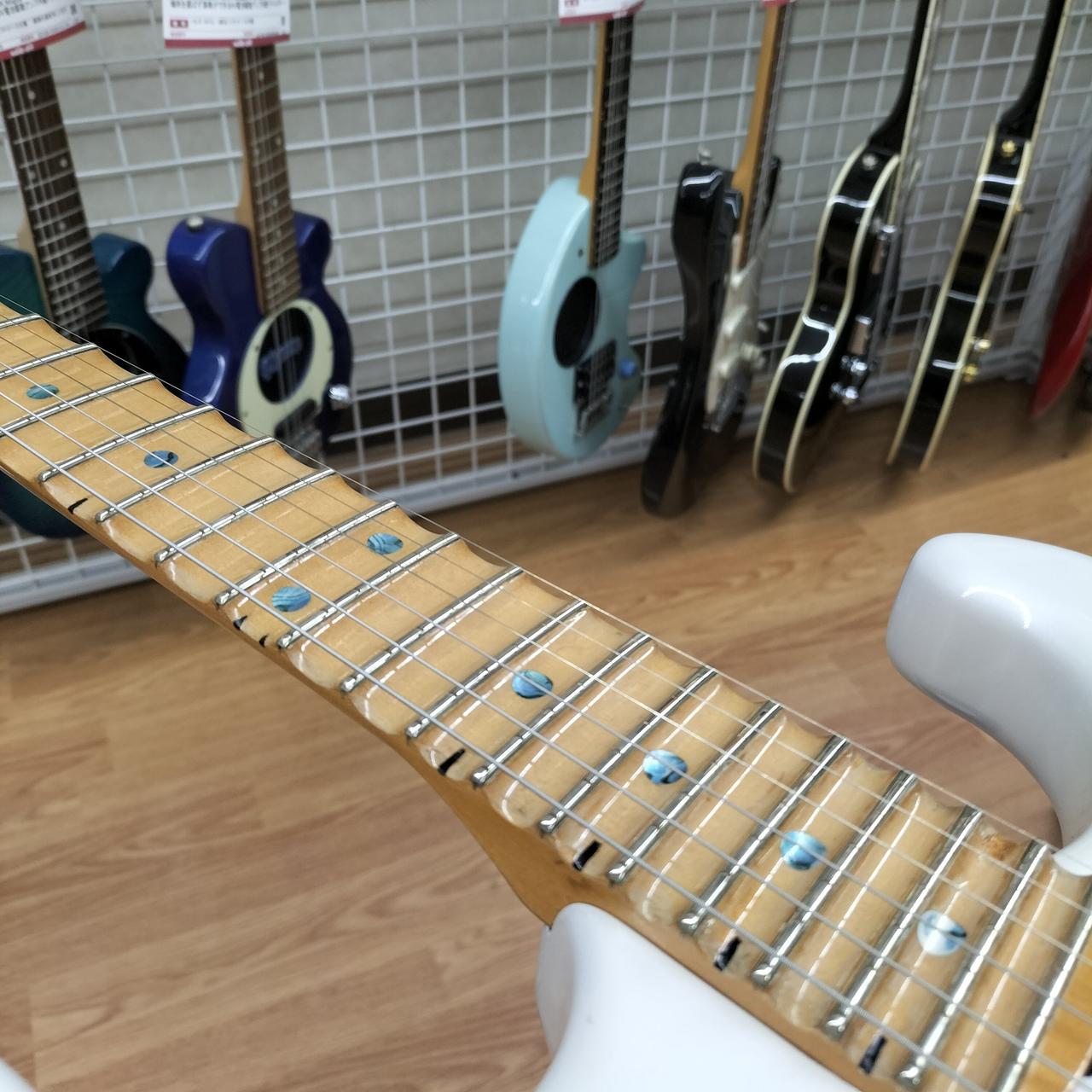 指板が全てスキャロップ加工されています。ジャックプレートが交換、ネジ穴埋められてます。 |
