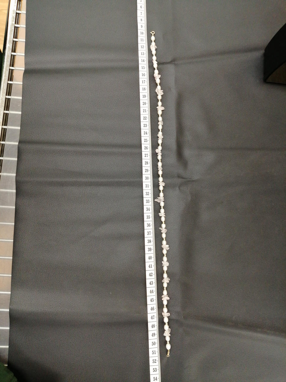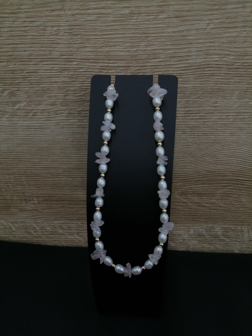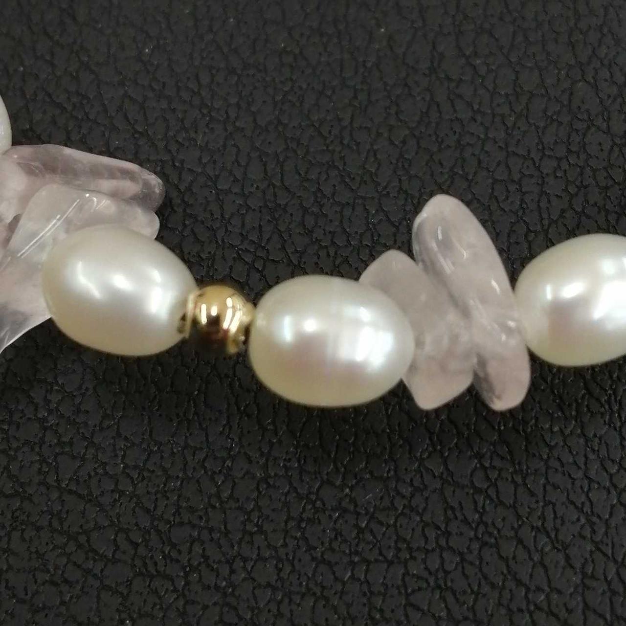 白いパールと薄ピンクの石がマッチして可愛いネックレスです!