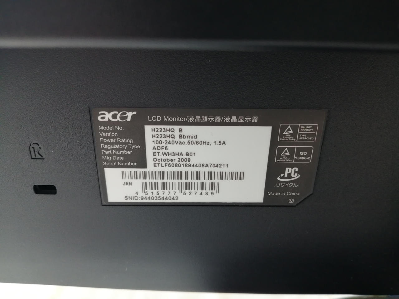 画面サイズ:21.5インチ 解像度:1920x1080 パネル種類: |