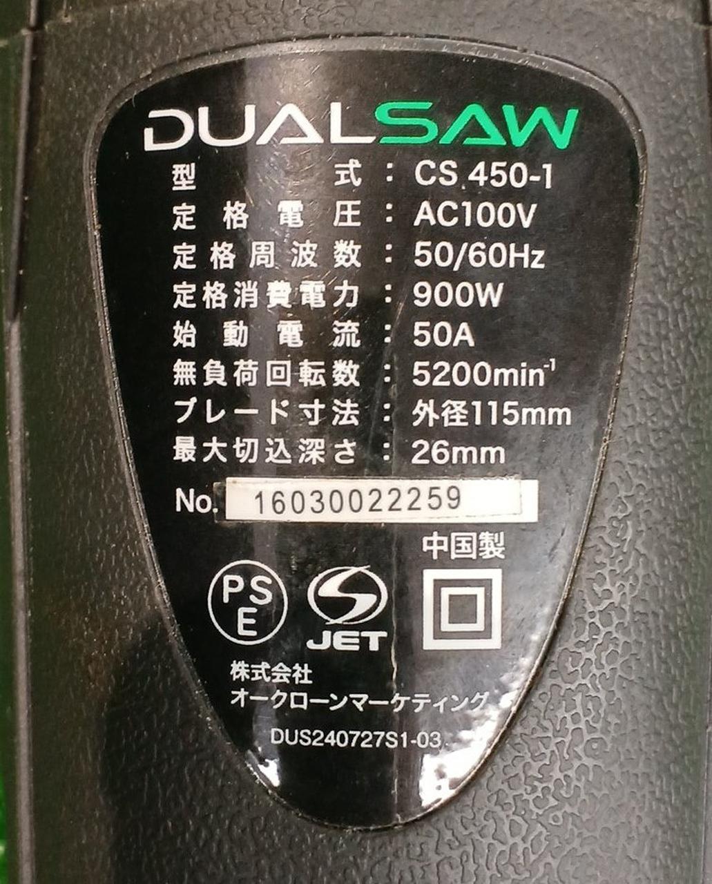 ノコ刃外径:115mm 回転数/分:5200回転 手持ち 動力:電気(コード式) |