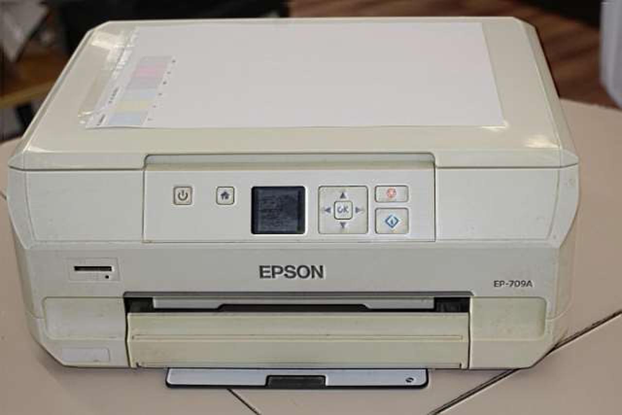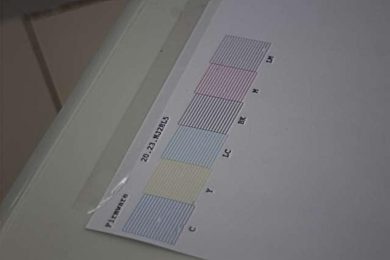 起動し、印字テスト出来ました。ノズルチェック結果、ほぼ色出ていますが若干かけている所有り |