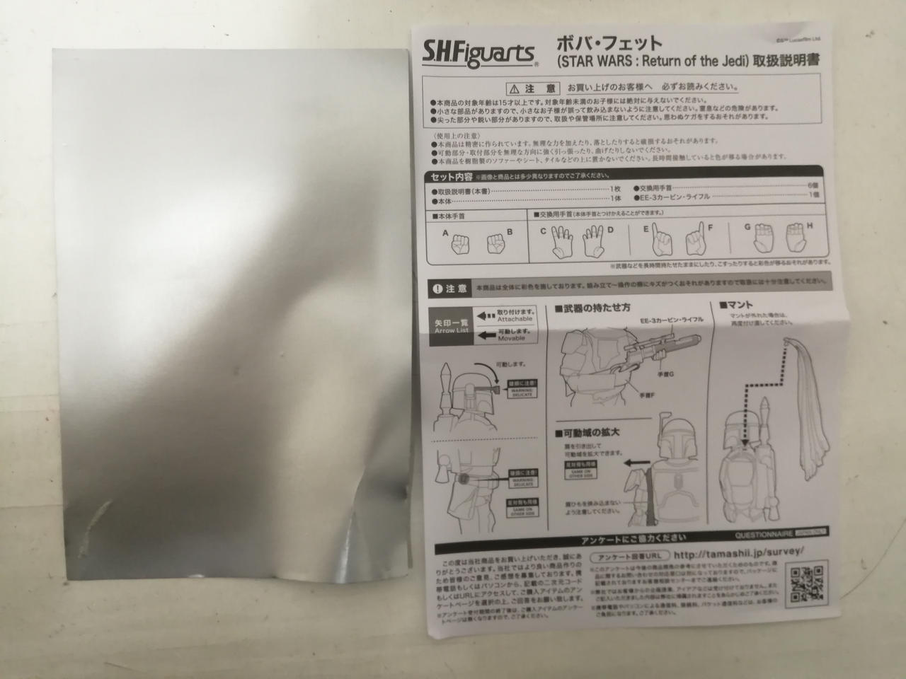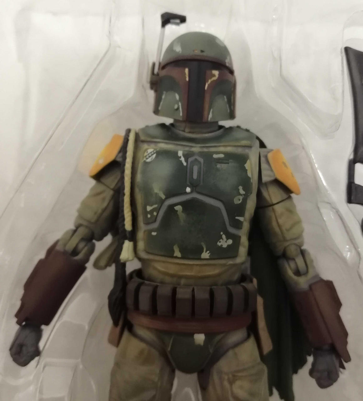 本体や武器、交換パーツに目立った傷や汚れは見られませんが、箱、ブリスター、中の台紙に傷みがあります。 |