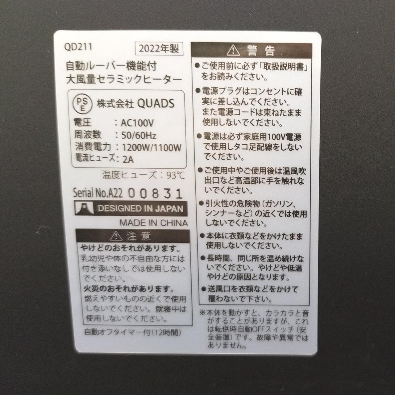 運転モード:3段階切替(パワフル・強・弱) |