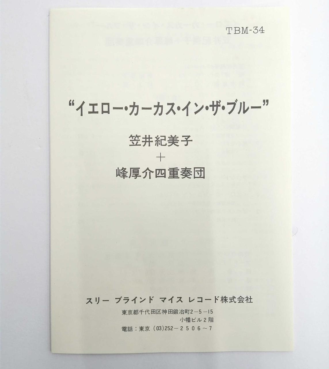 笠井紀美子 + 峰厚介四重奏団/YELLOW CARCASS IN THE BLUE |