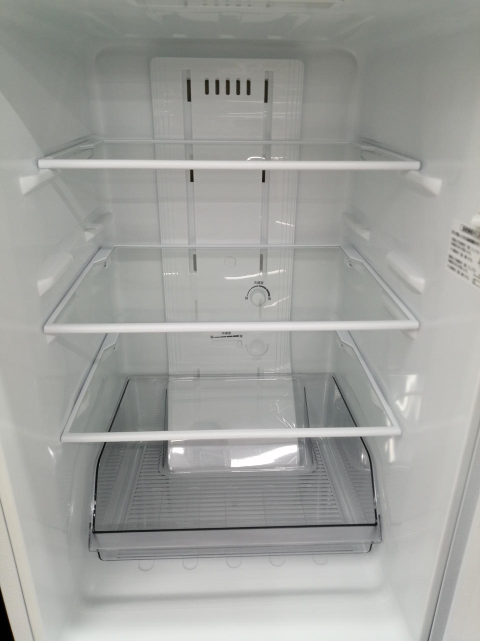 1人暮らしにうれしい収納量です。2Lのペットボトルが3本も入るほか、冷蔵室のガラス棚も3段タイプ。コンパクトなのに、使いやすい工夫でいっぱいです。