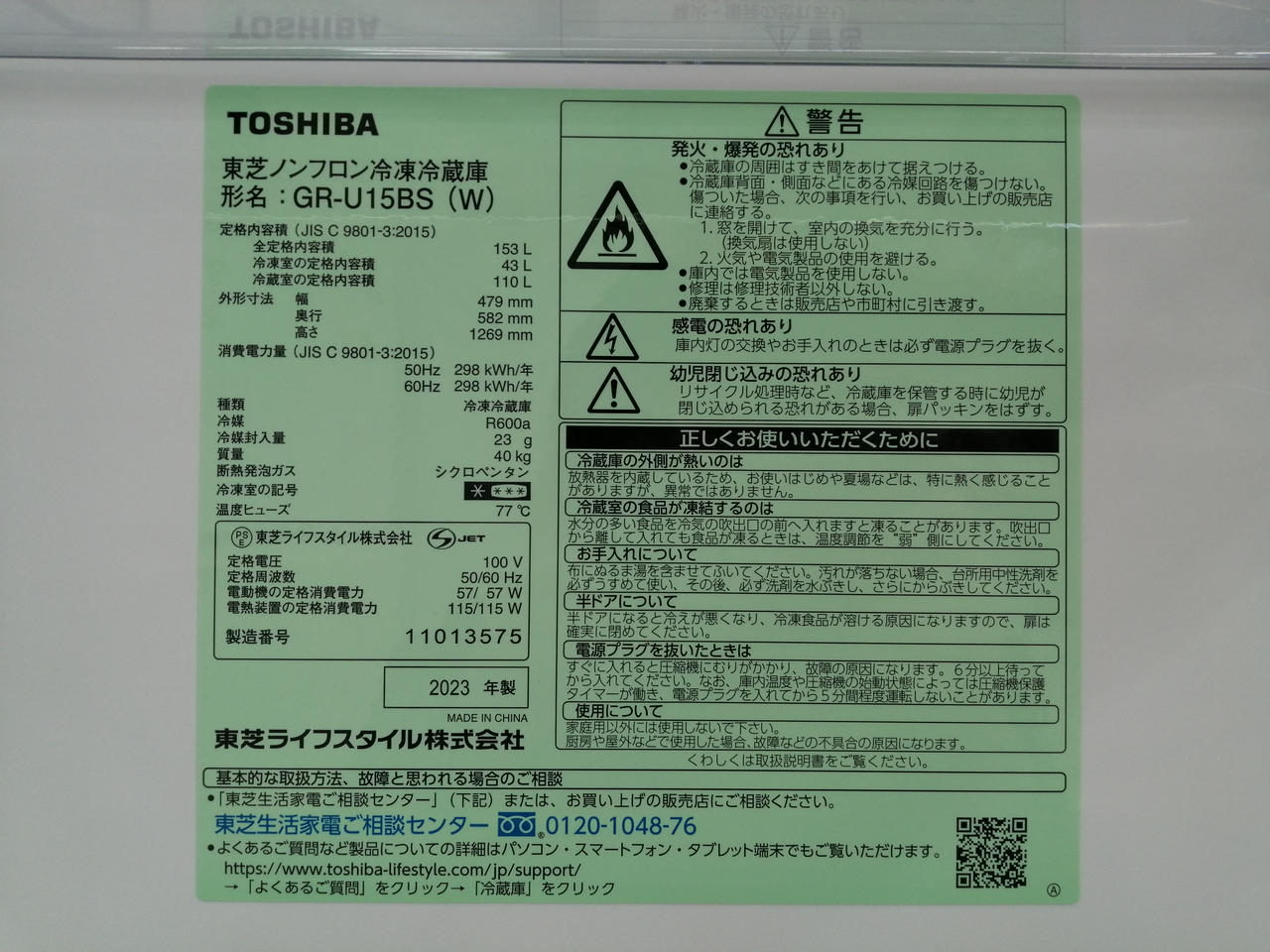 定格内容積:153L |