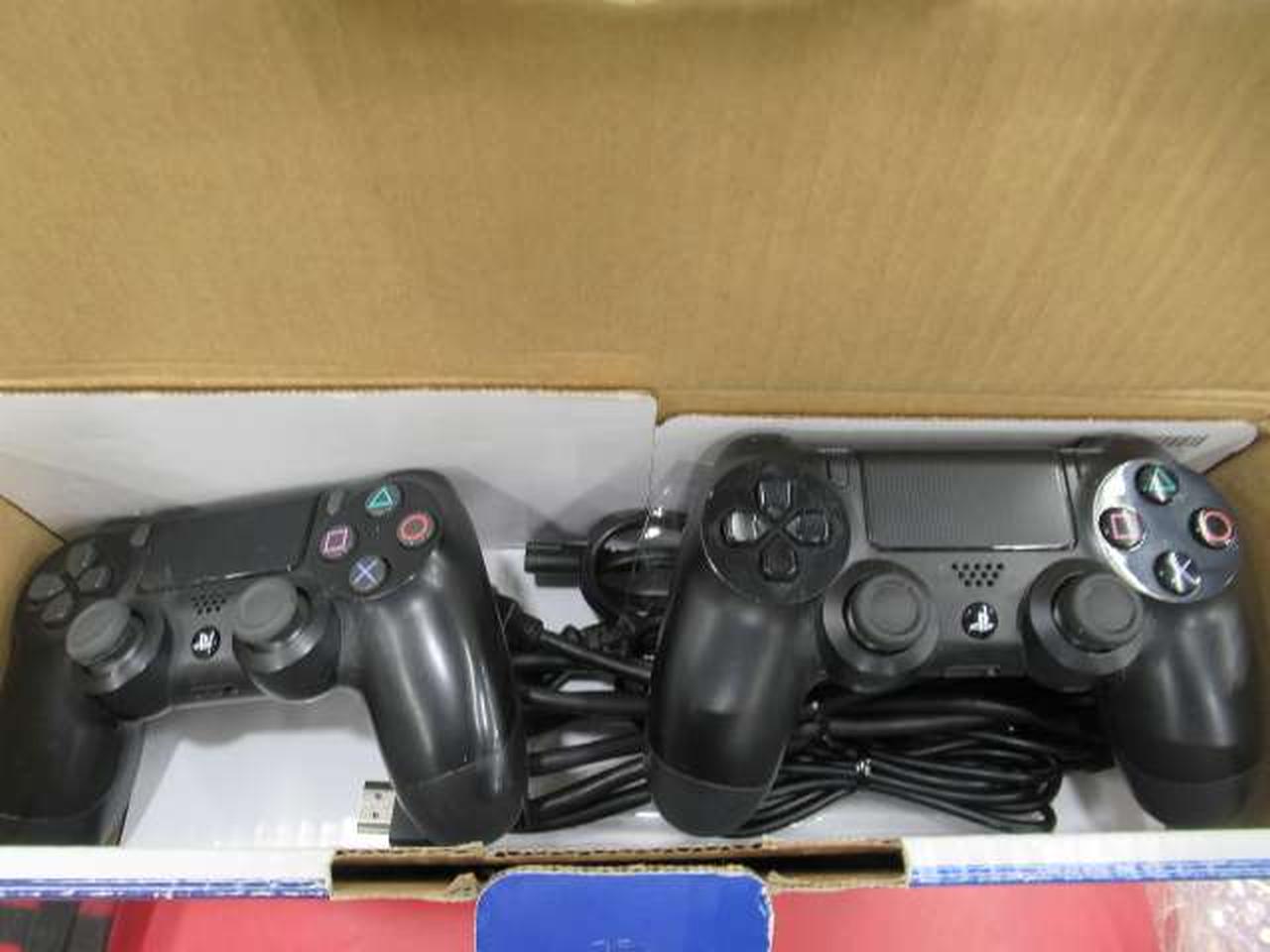 箱・コントローラー(DUALSHOCK4)×2・USBケーブル×2・モノラルヘッドセット・HDMIケーブル・電源ケーブルとなります。画像にて、ご確認ください。 |