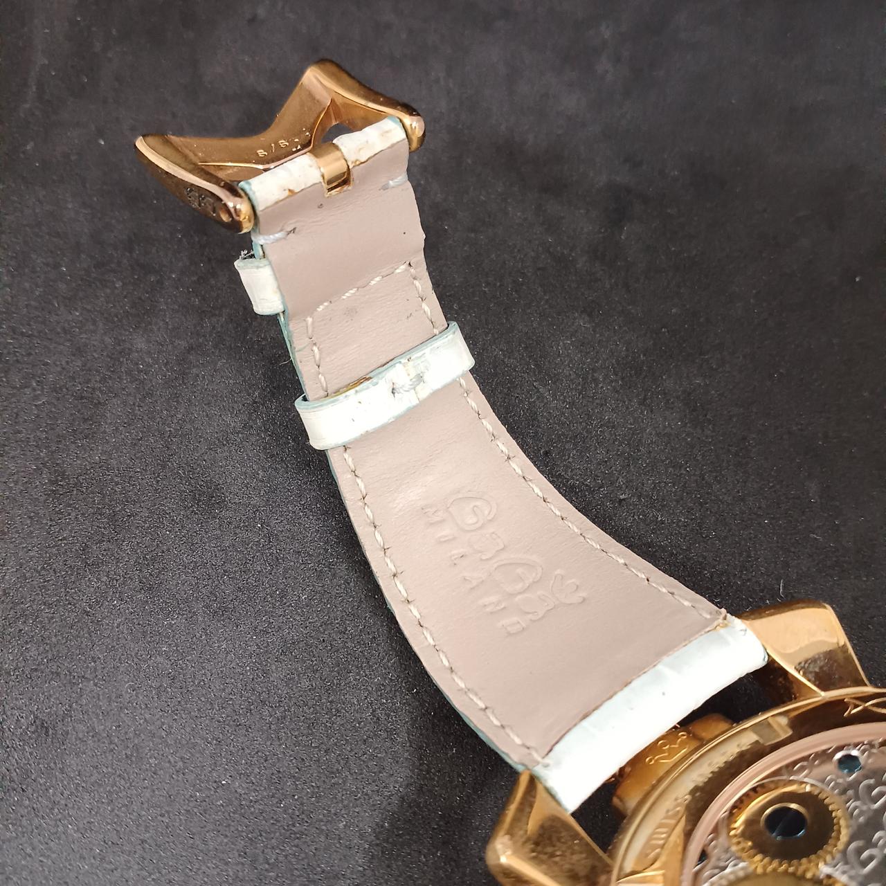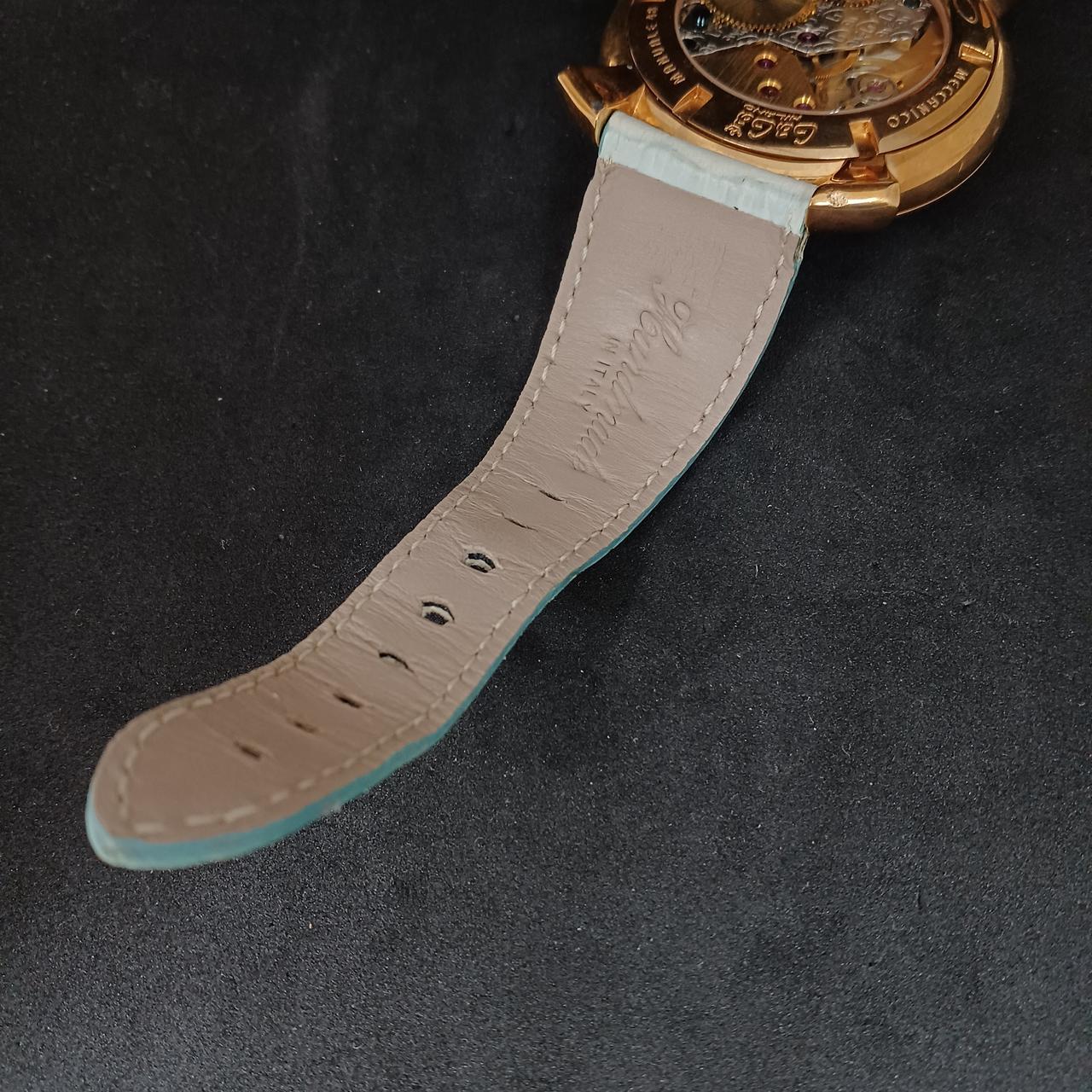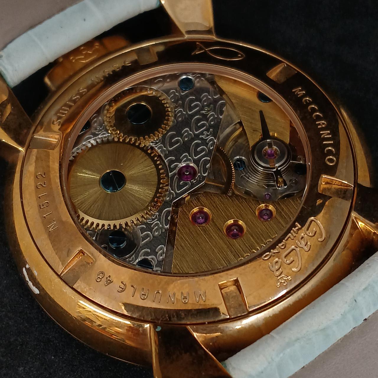 ケースサイズが48mmの大きなフェイスで見る人すべてに存在感をアピールすることができるコレクション。裏面は中のムーブメントが見えるシースルーバック。 |