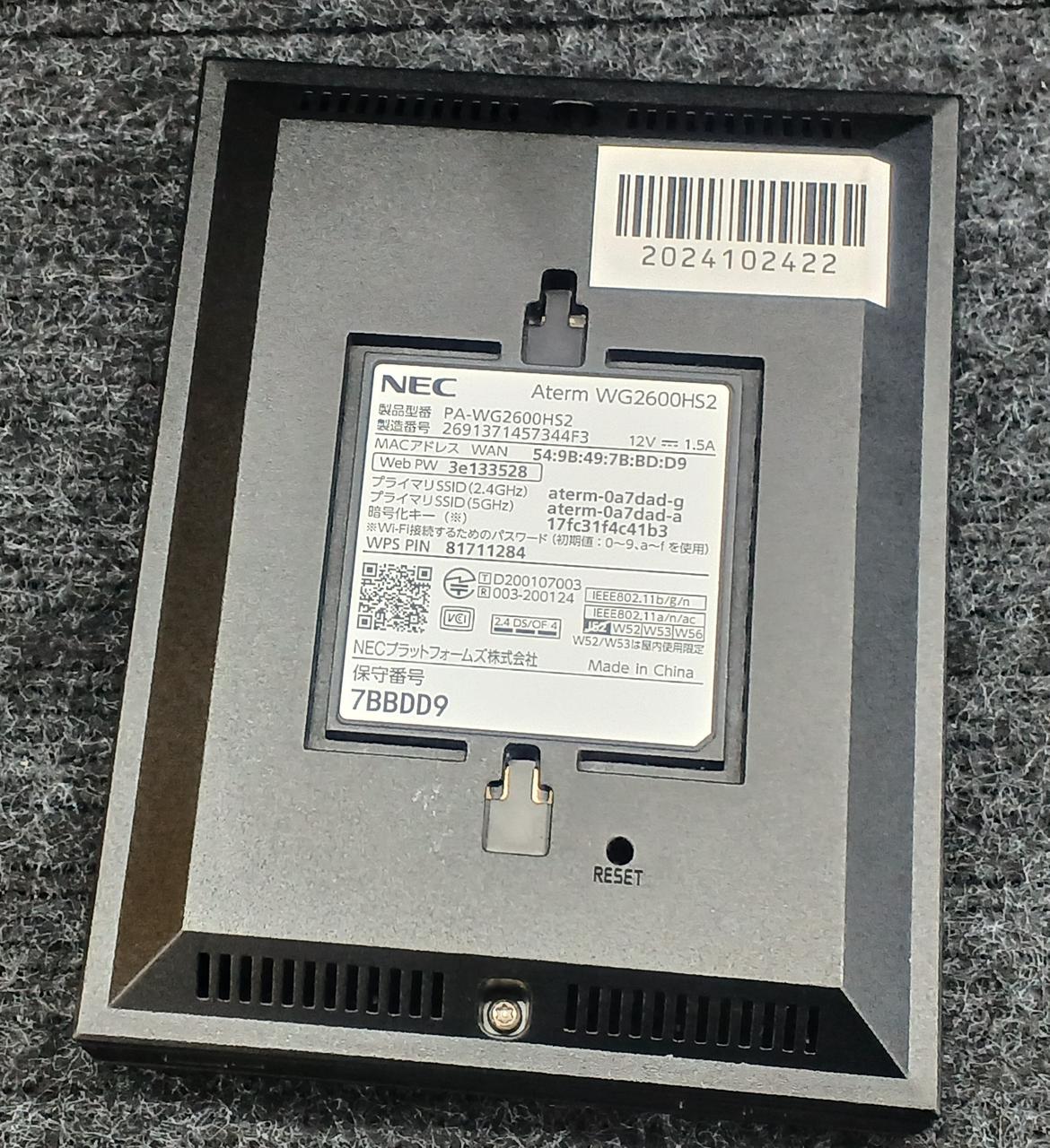 無線LAN規格:WI-FI5 周波数:2.4/5GHZ IPV6:○ |
