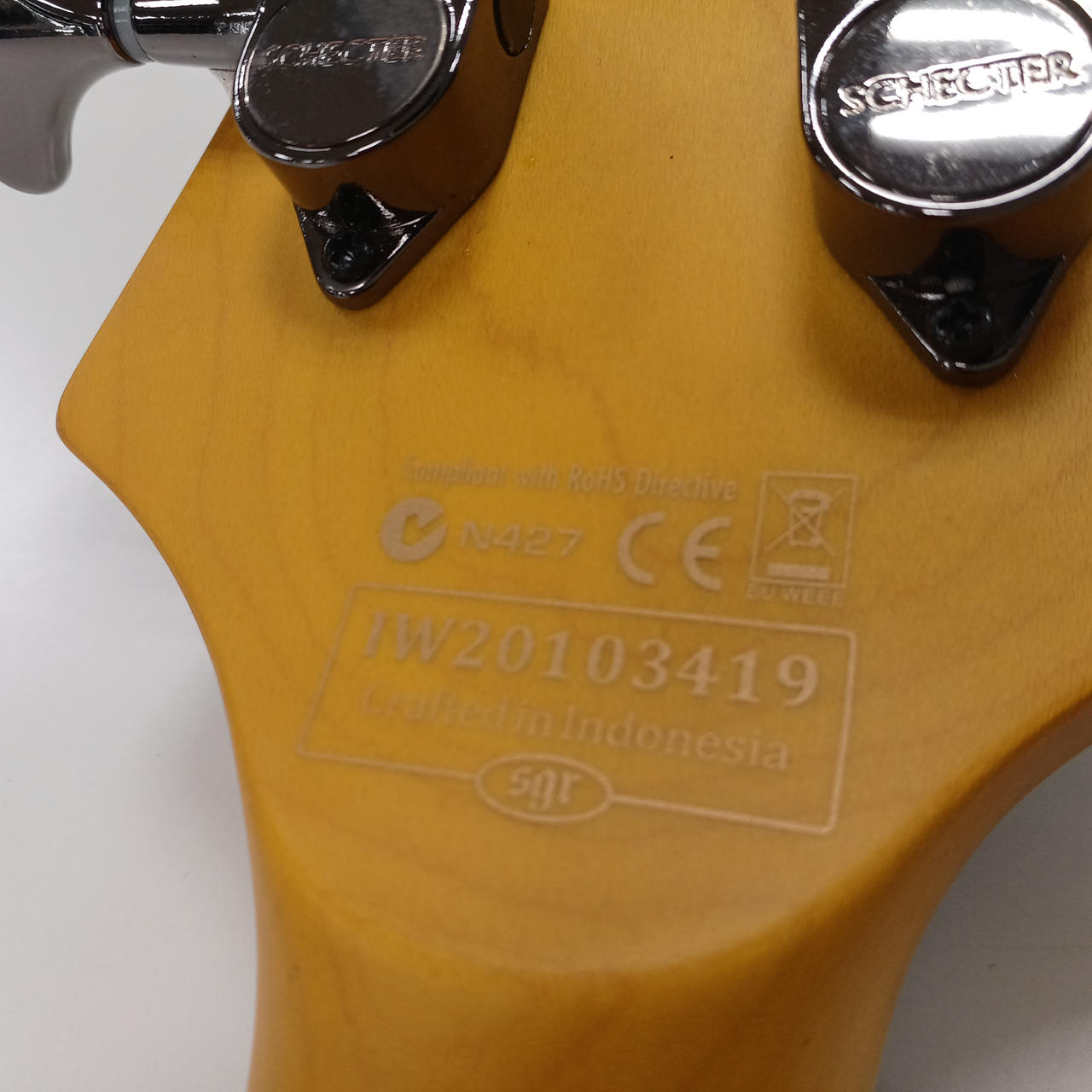 トップ:メイプル、ボディ:マホガニー、ネック:メイプル、指板:ローズウッド |