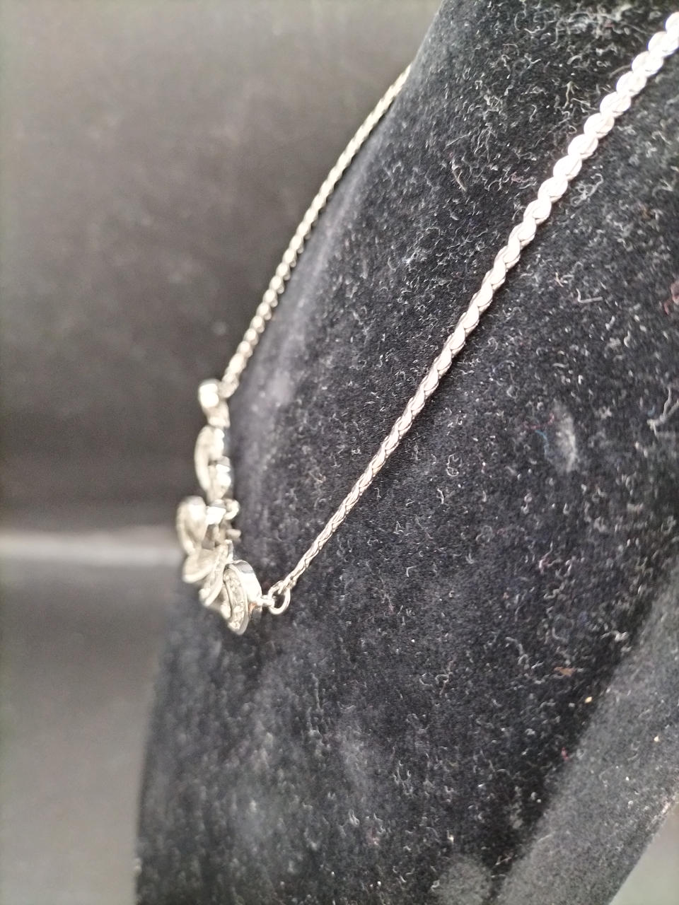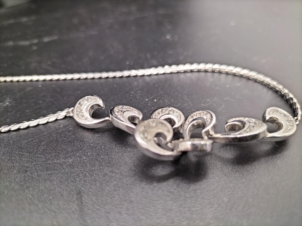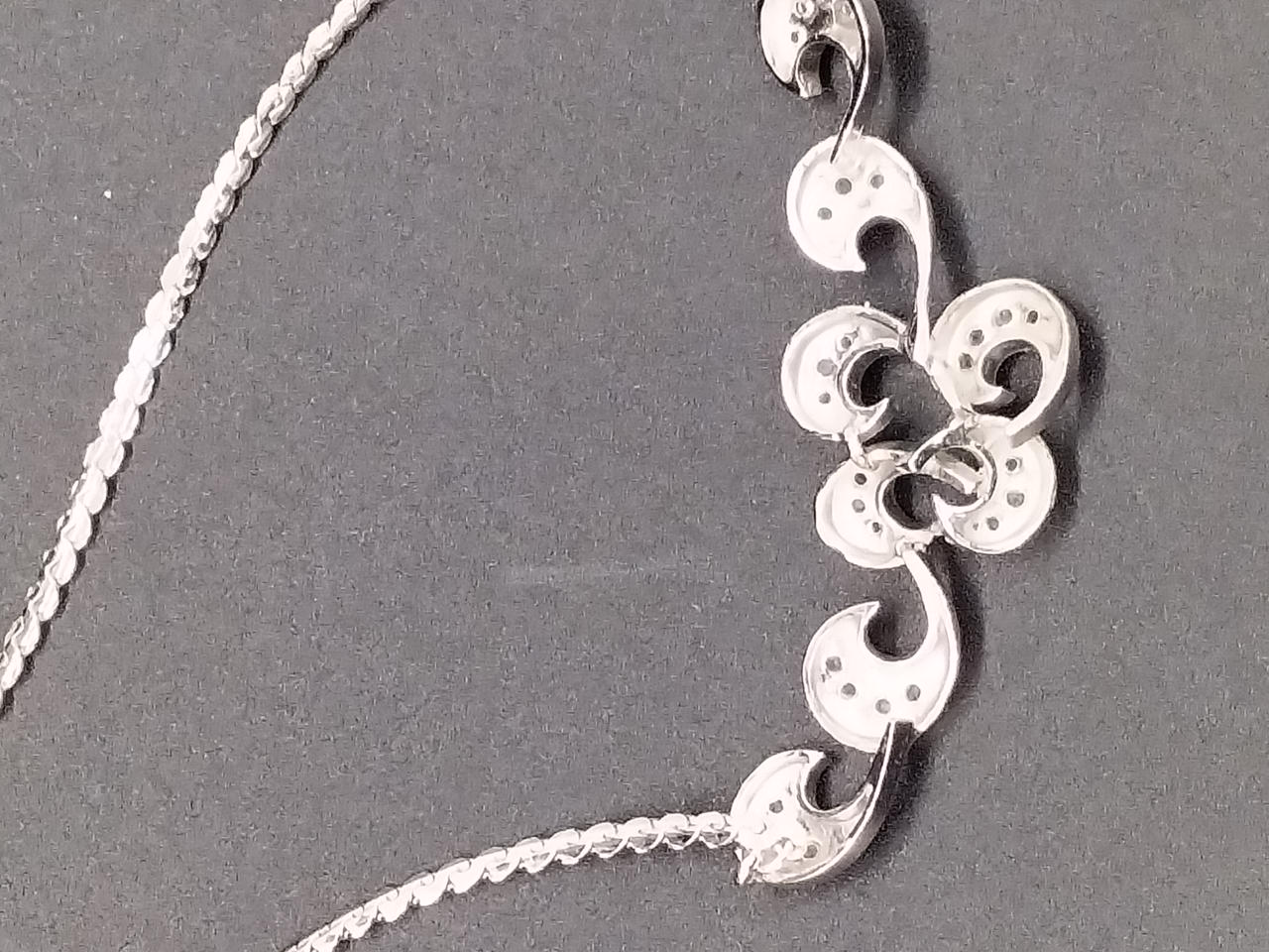 クリアラインストーンが嵌め込まれ、立体的なデザインの裏側からは光が入り光るよう丁寧に造られています。