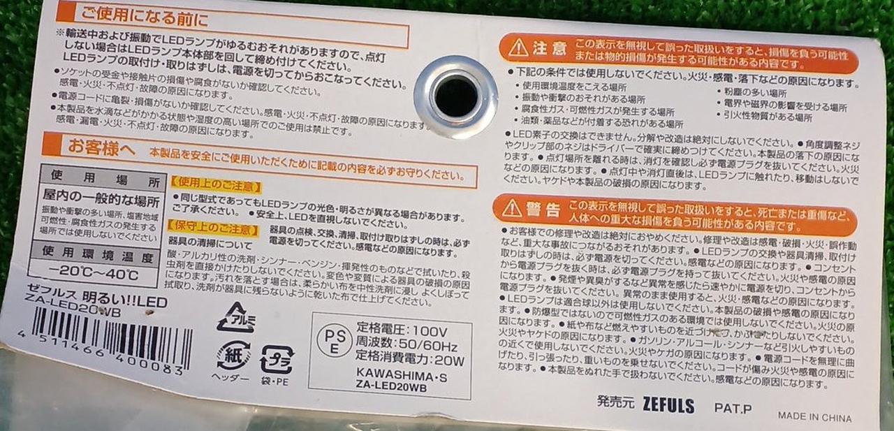 明るさ:1785Lm LED昼白色:5430K 大型クリップ 360°回転 屋内用 |