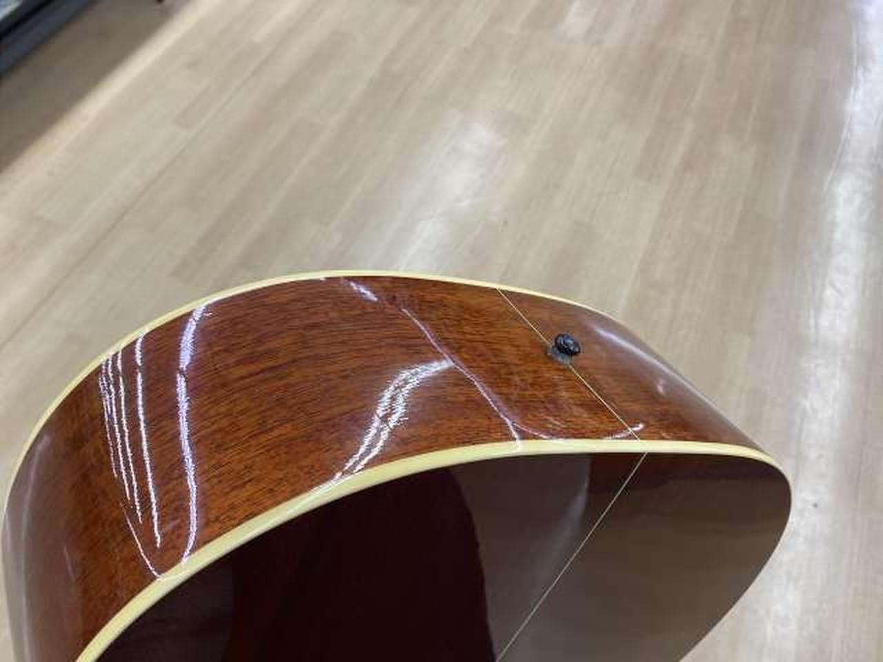トップにスプルース単板、マホガニーサイドバックと伝統的なスペックで、綺麗なインレイが目を引きます。カラッとしたサウンドでバランスの良い一本です |