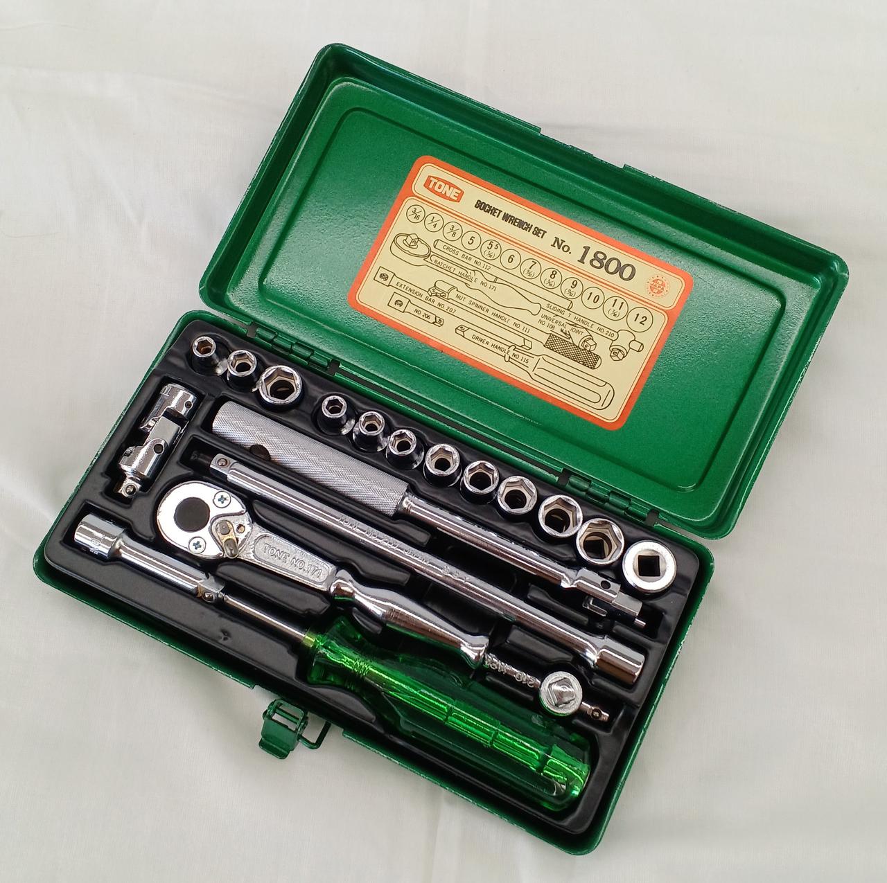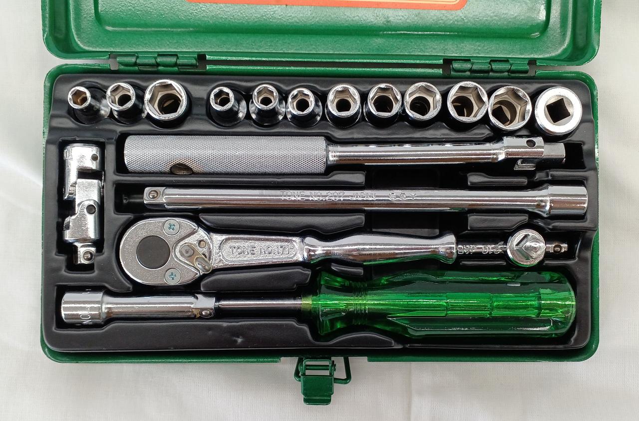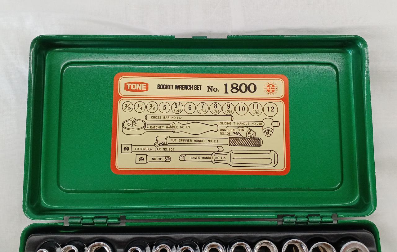 ソケット(3/16,1/4,3/8,5,5.5,6,7,8,9,10,11,12)、クロスバー(112)、ラチェットハンドル(171)、スライディングTハンドル(210)、ユニバーサルジョイント(108)、ナットスピンナーハンドル(111)、エクステンションバー(207,206)、ドライバーハンドル(115) |