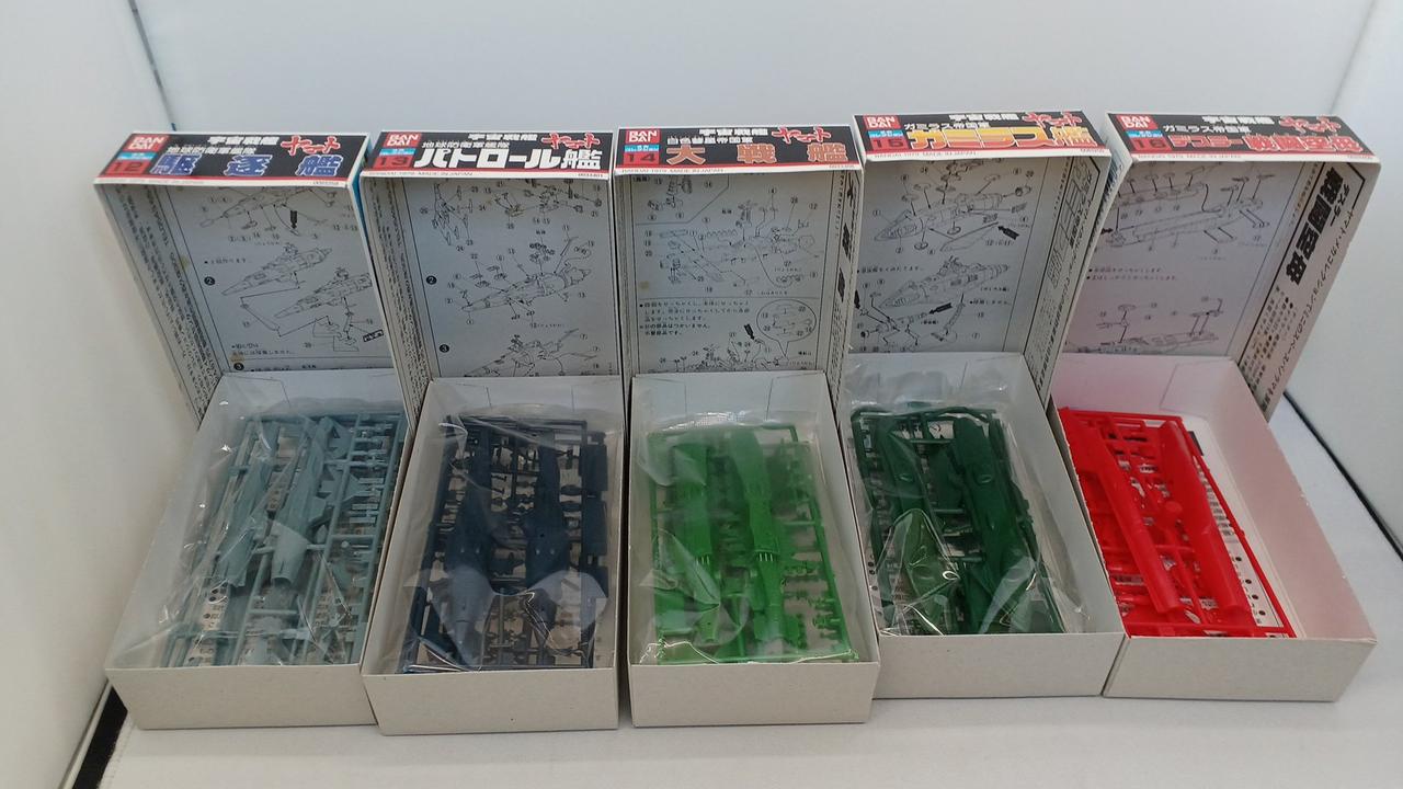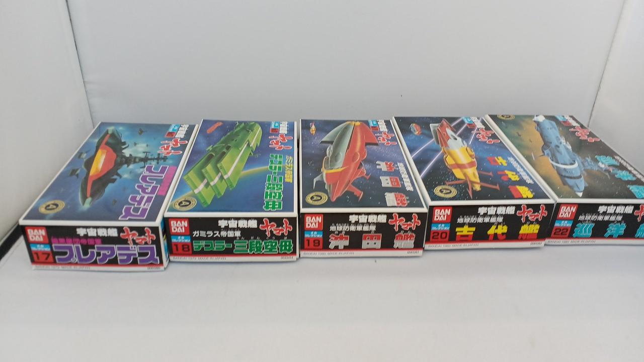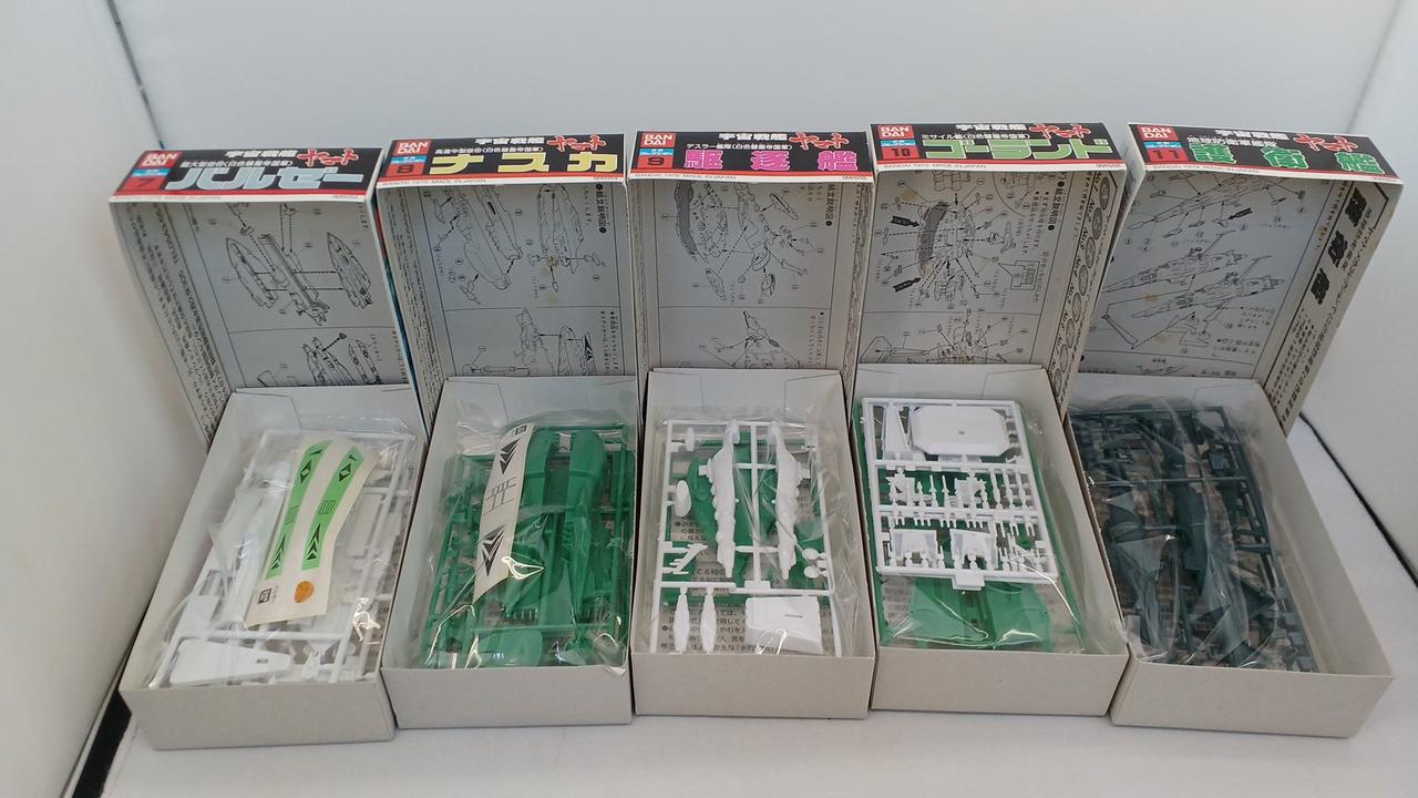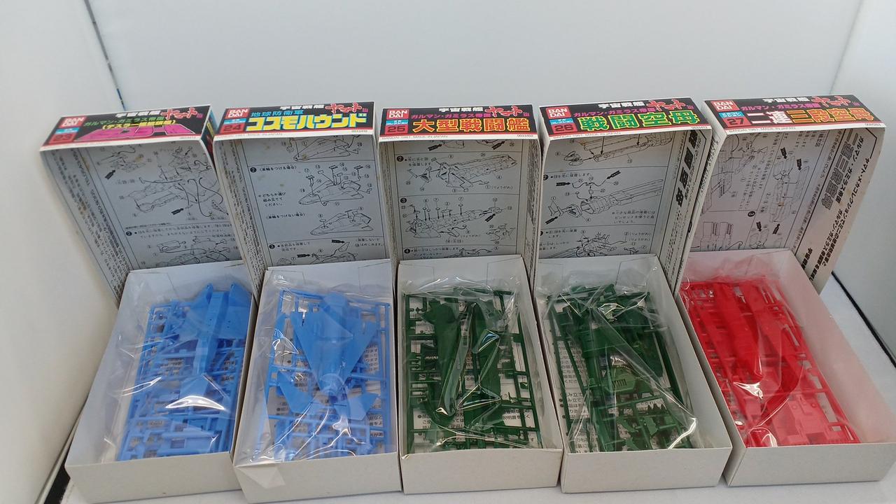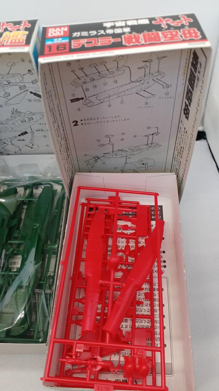 No.1宇宙戦艦ヤマト、No.21コスモゼロ抜けています。No.16デスラー戦闘空母は内袋がなく、ランナーより外れているパーツがございます。箱に染み汚れございます。写真に写っているもので全てです。
