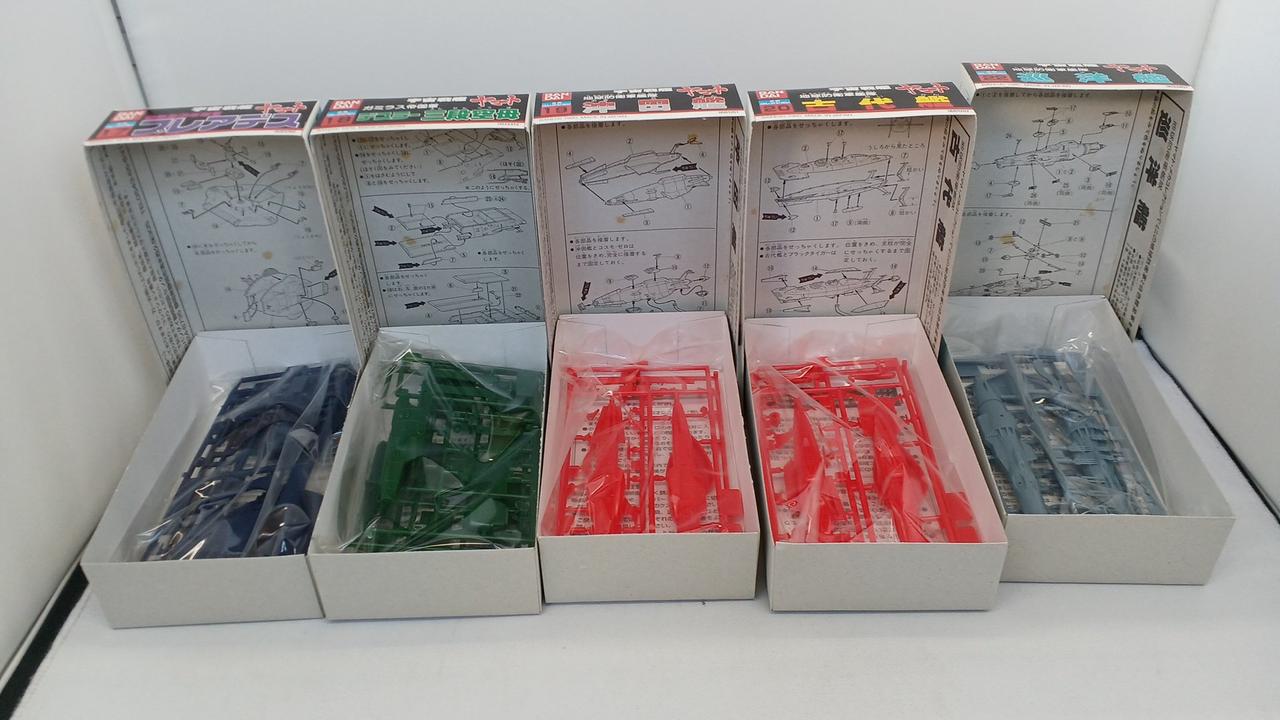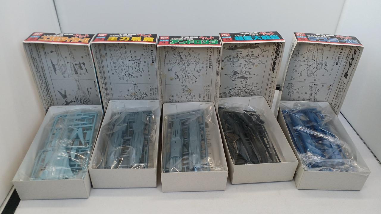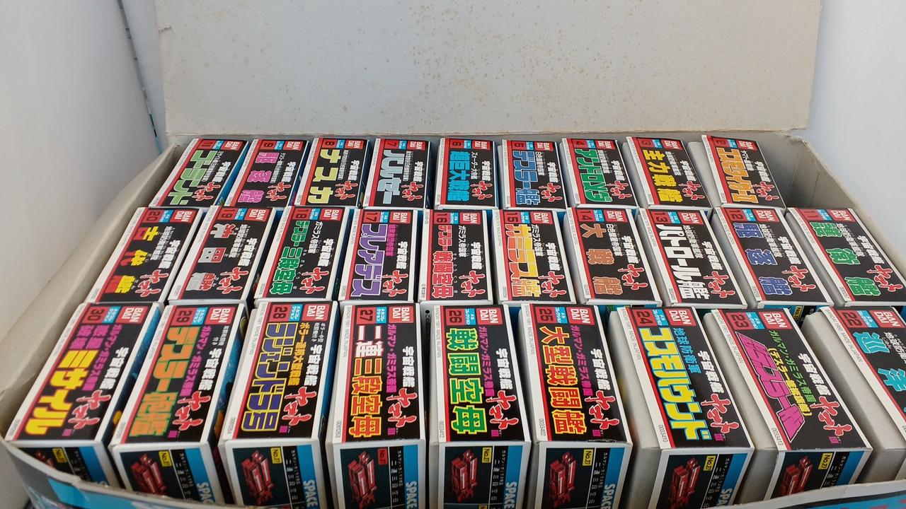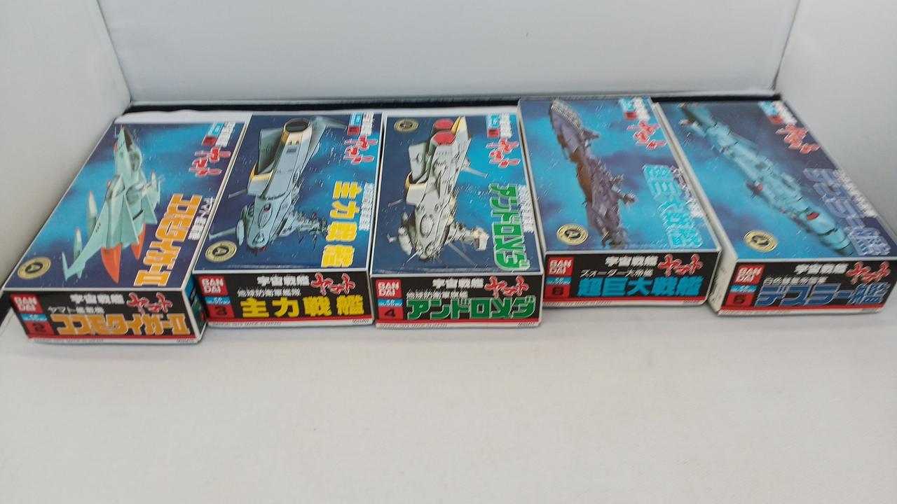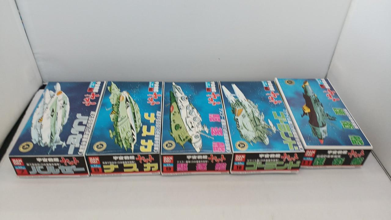 No.1宇宙戦艦ヤマト、No.21コスモゼロ抜けています。No.16デスラー戦闘空母は内袋がなく、ランナーより外れているパーツがございます。箱に染み汚れございます。写真に写っているもので全てです。