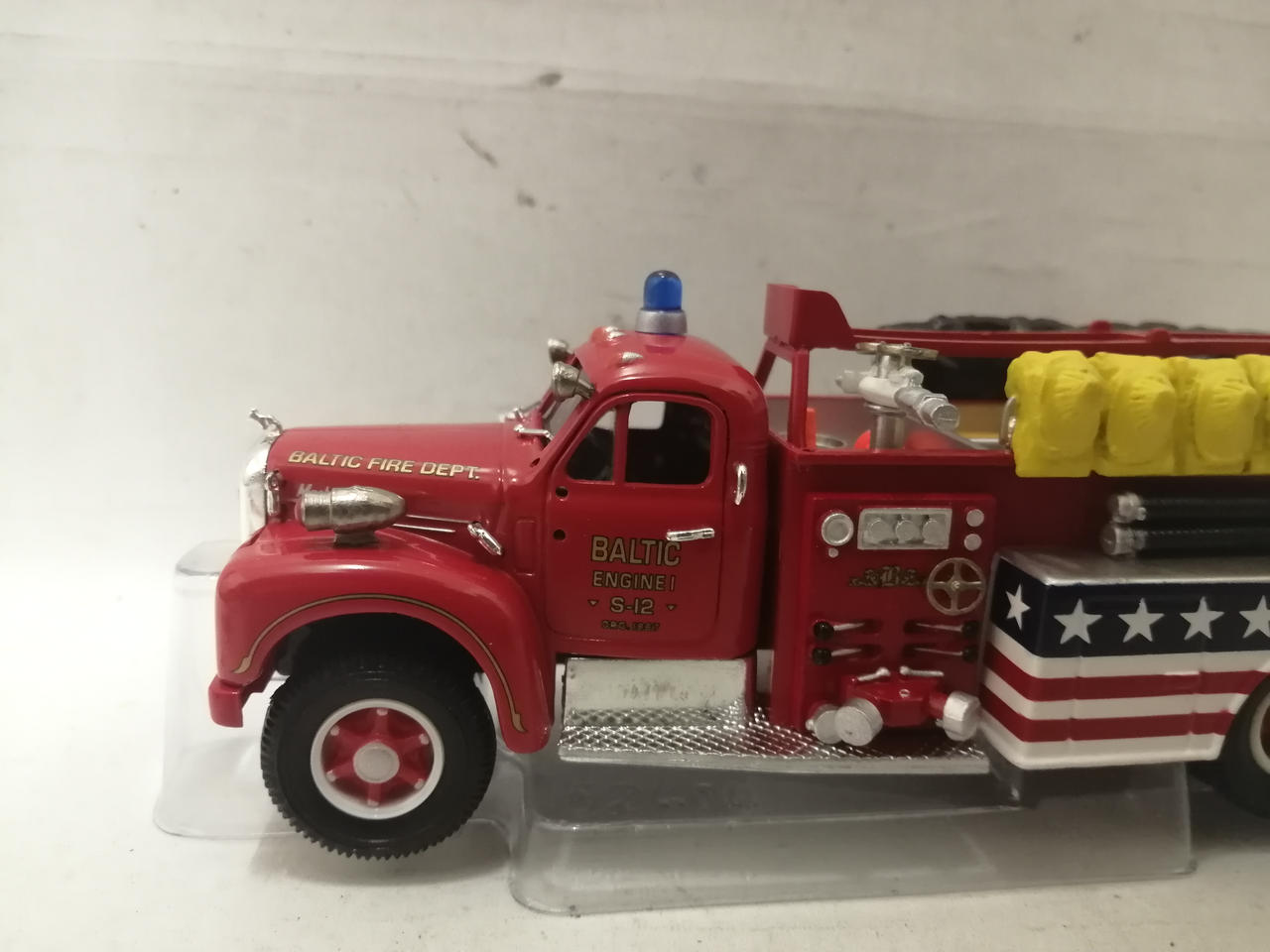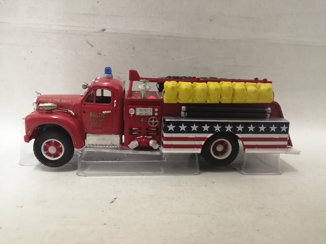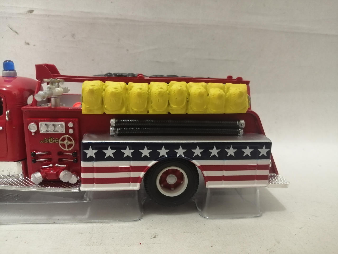 車体の銀色の部分にくすみが見られます。細かな塗装のムラや擦れが見られます。袋に入っている部品はほとんど未使用のものと思われます。 |