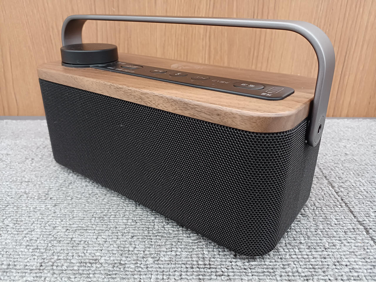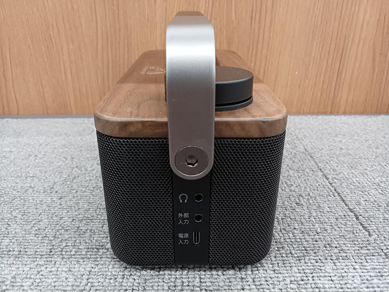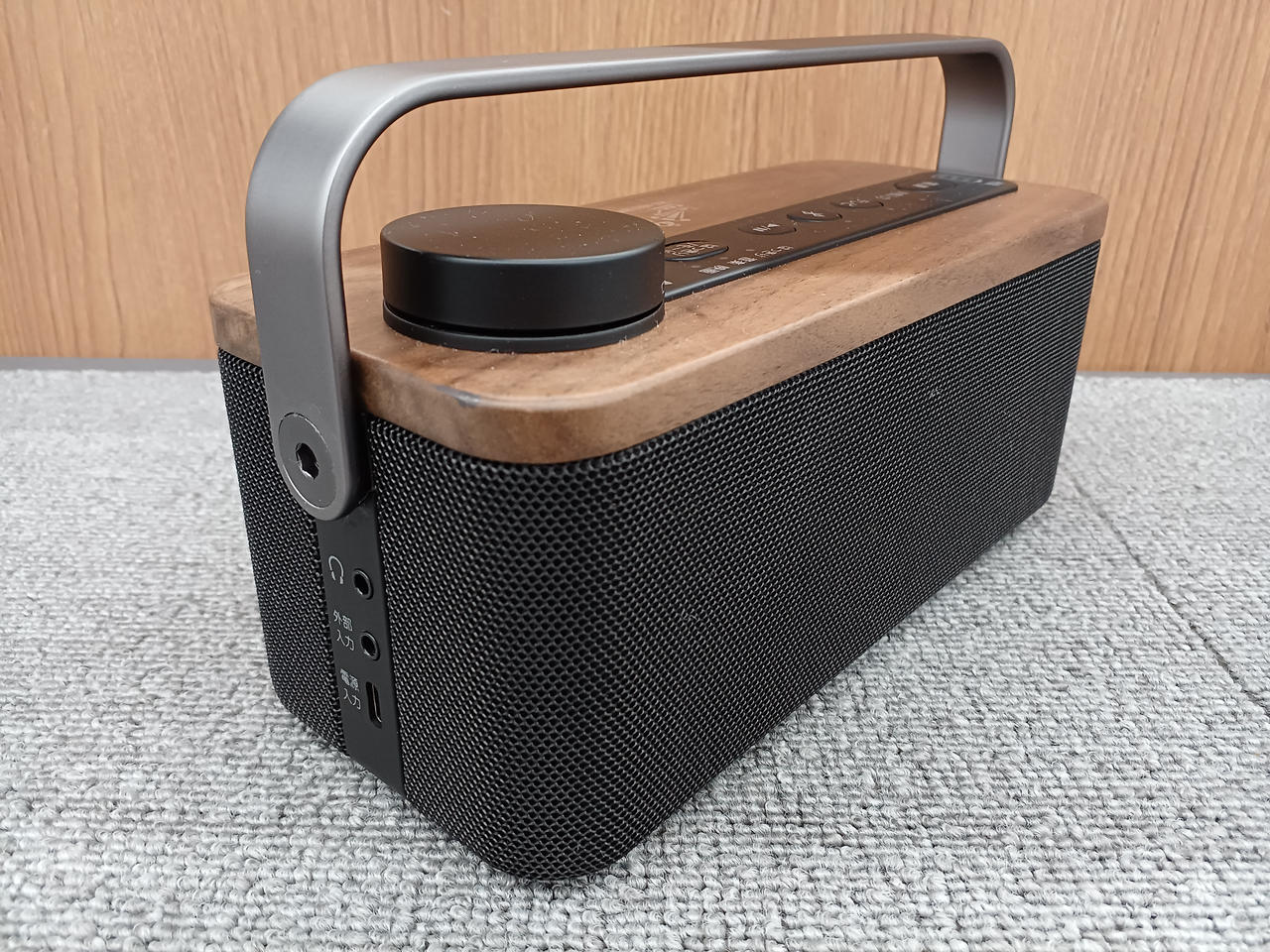 スピーカー部の天板にインテリアと相性のよい天然木を使用したテレビ用手元スピーカー |