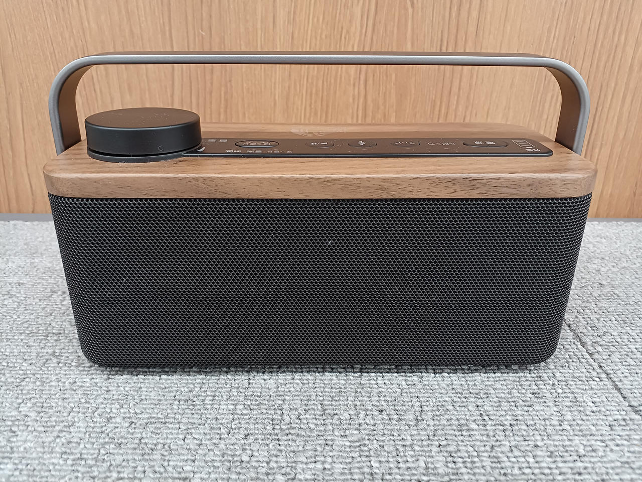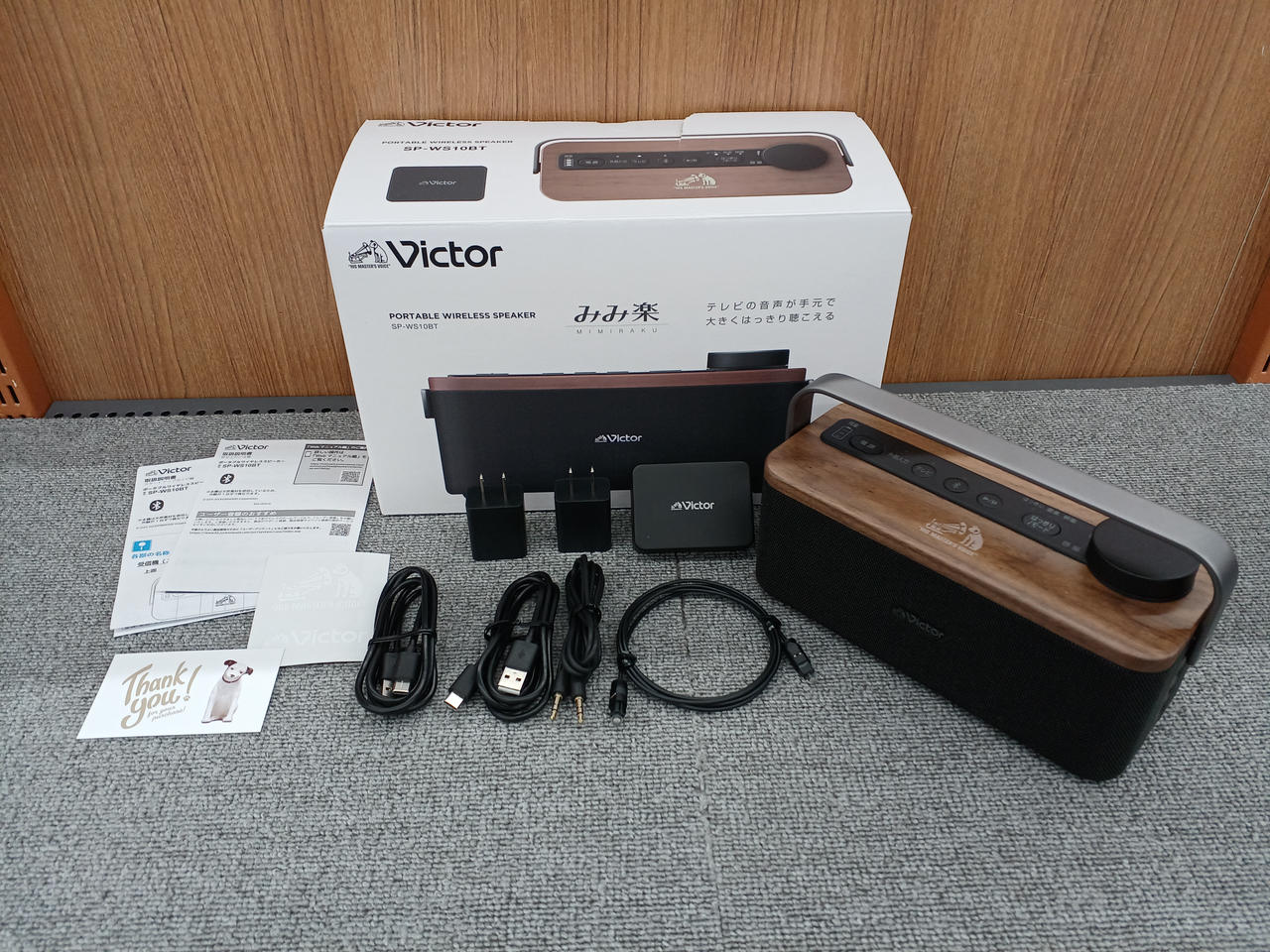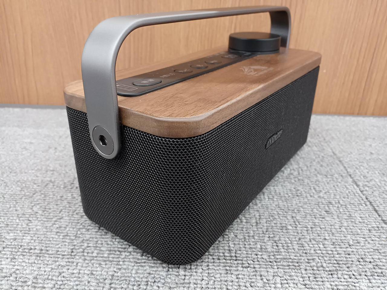 スピーカー部の天板にインテリアと相性のよい天然木を使用したテレビ用手元スピーカー |