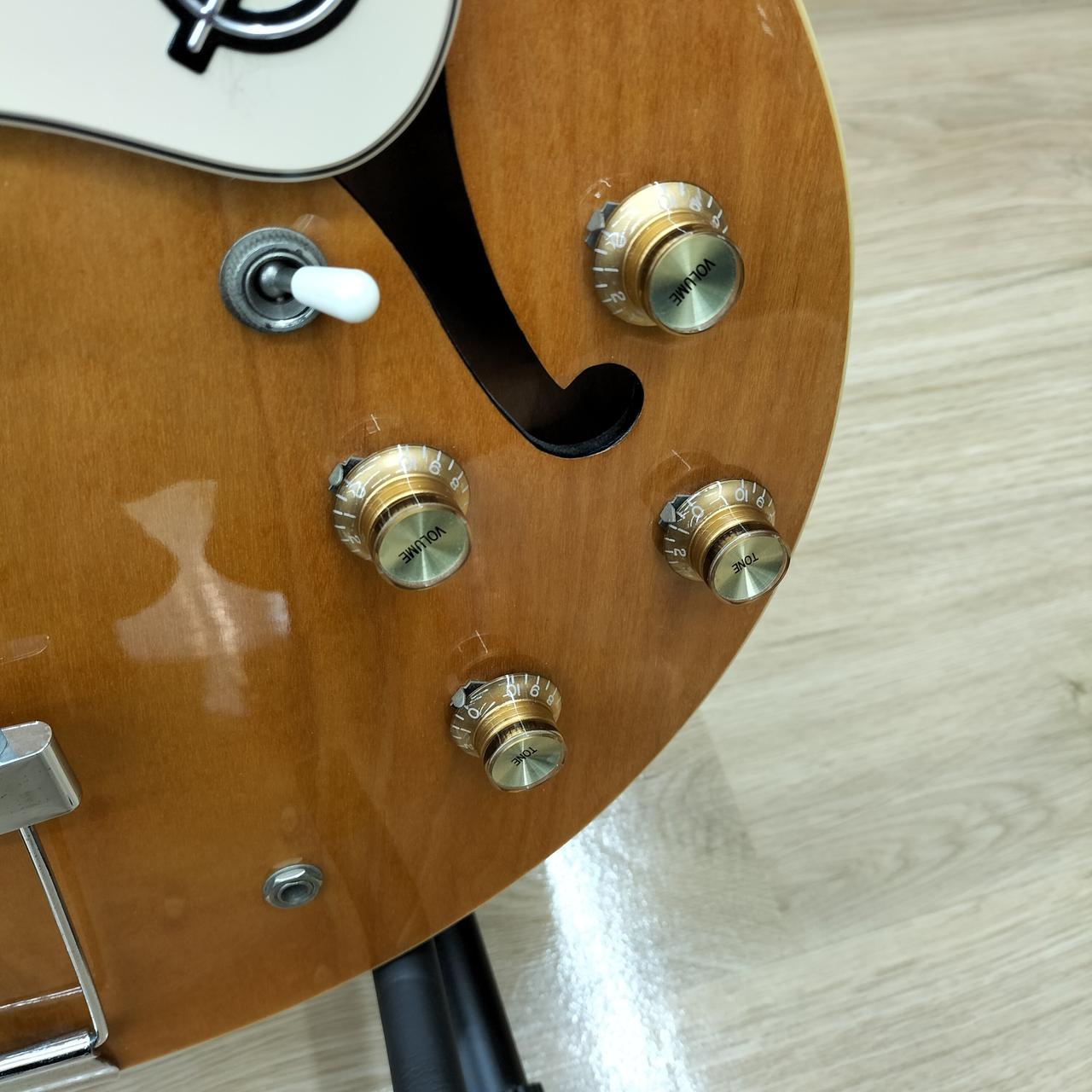 エピフォンPRO P-90ドッグイアー・シングルコイルピックアップ、5PLYメイプルボディを採用。ホロウボディとP-90シングルコイル・ピックアップから成るサウンドは独特で芯の太さと繊細さが両立するようなトーンを奏でます。