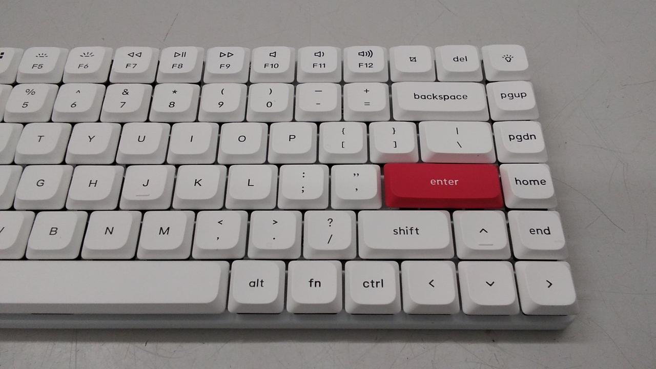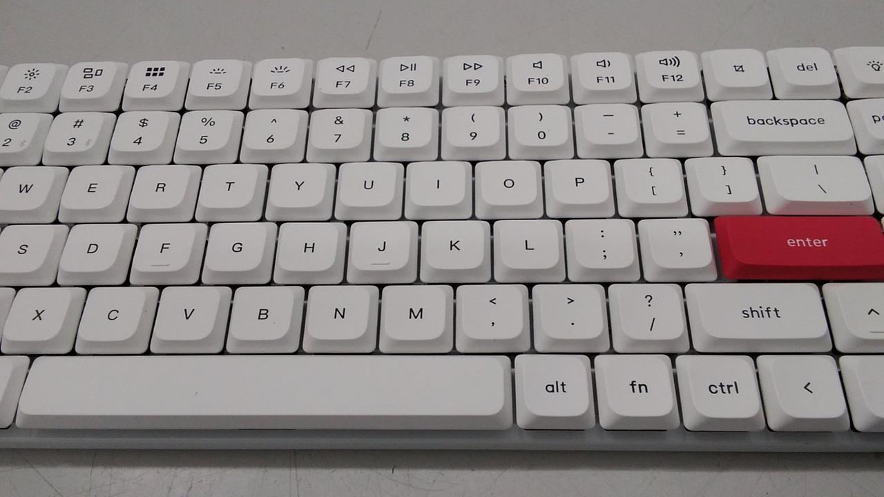 キーレイアウト:英語84 キースイッチ:メカニカル インターフェイス:USB/Bluetooth テンキー:なし(テンキーレス) |