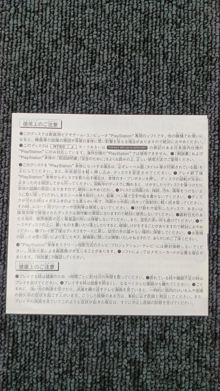 ディスク1にキズが多いためジャンクです。取説にダメージあります。 |