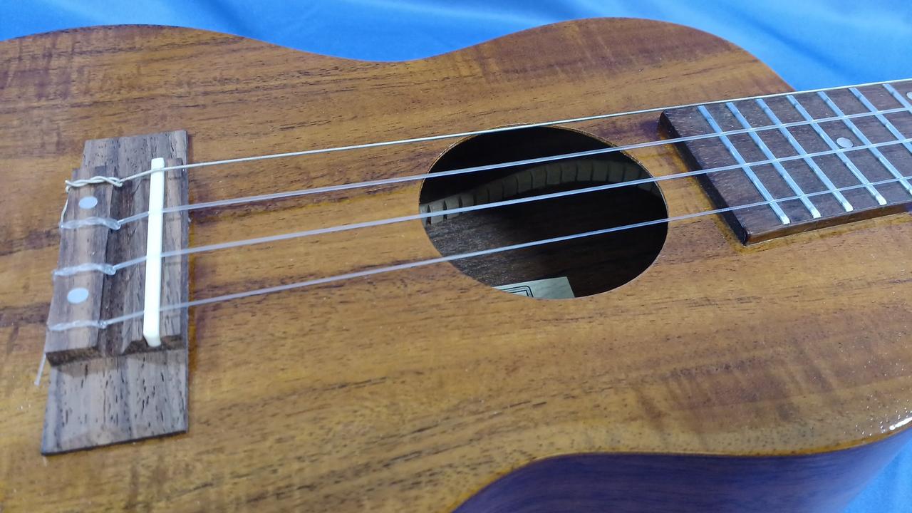 トップ、サイド&バック全てにコア材を起用し、グロスフィニッシュで高級感を漂わせた、音色・容姿共にトラディショナルの域を超えたウクレレ |