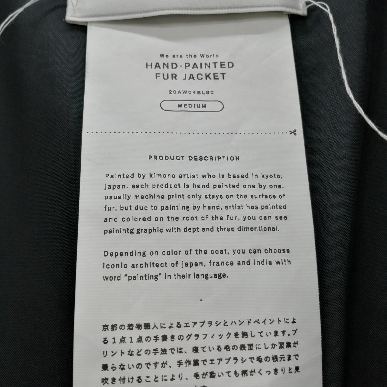 京都の着物職人によるエアブラシとハンドペイントによる1点1点の手書きのグラフィックを施した定番のフェイクファージャケット! |
