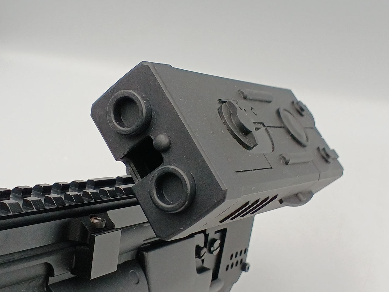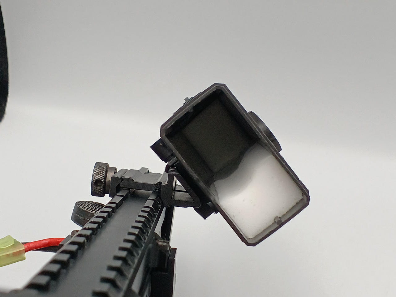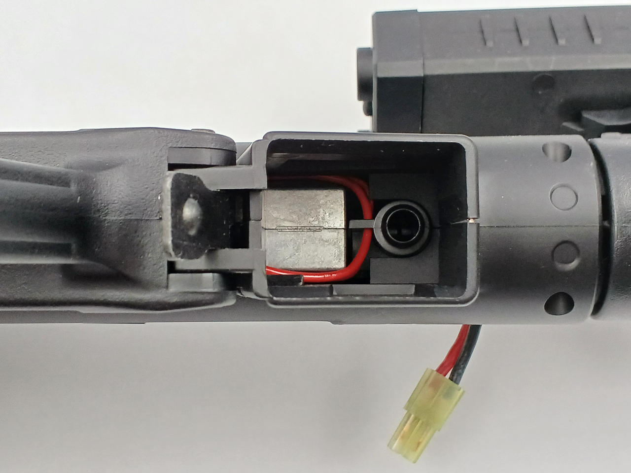 多段マガジンが二本付属します。バッテリー用ケースが付属します。マズルガードが取り付けられているなどカスタム品となります。 |
