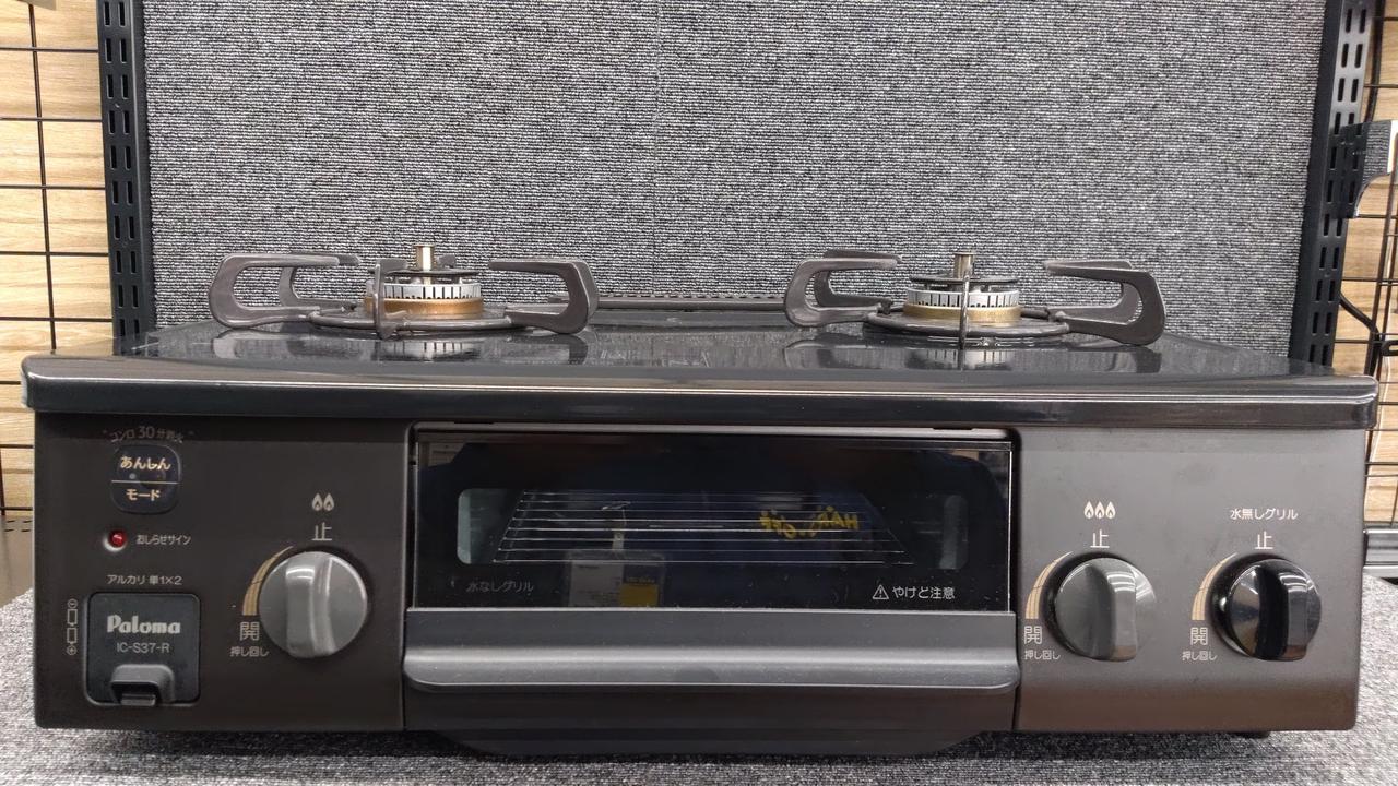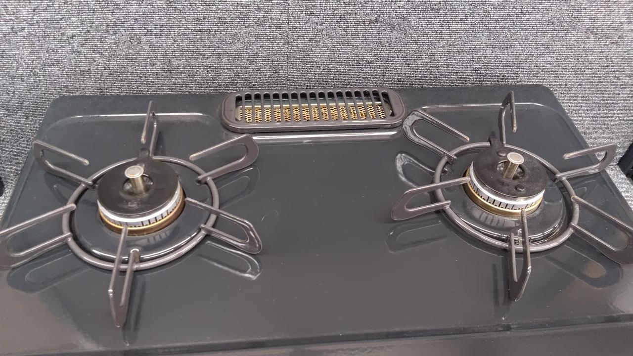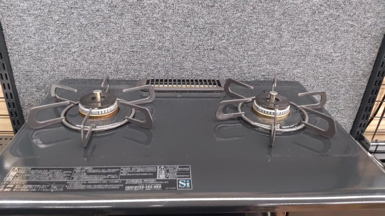 LPガス用 2口ガスコンロ 外寸:幅560×高さ218×奥行447 mm 水無し片面焼き 汁受け皿なし(汁受けレス) |