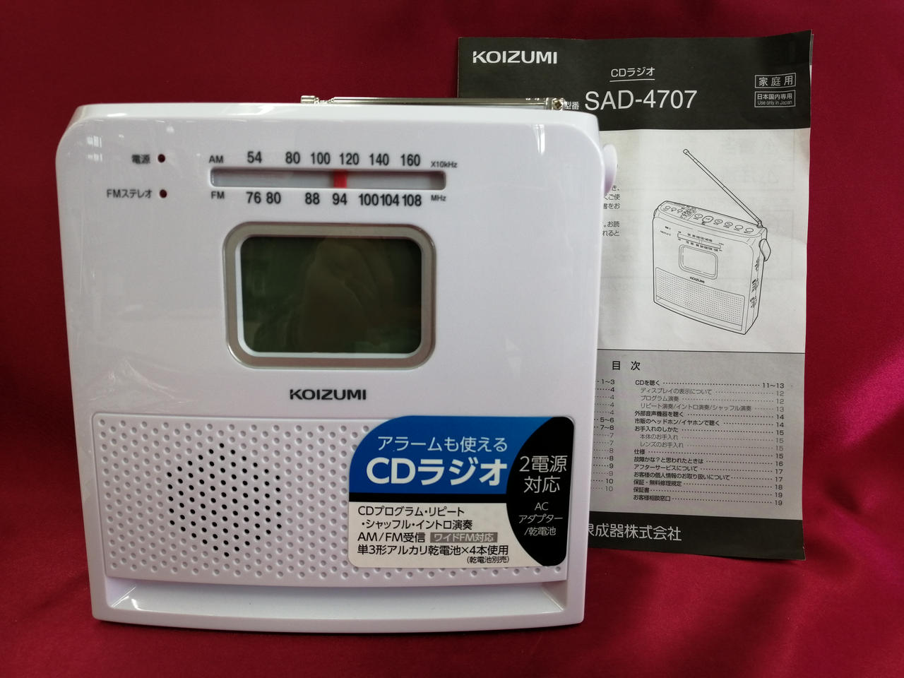 持ち運びが簡単でアラームも使えるCDラジオ。AM/FM/FMステレオ、ワイドFMに対応 |