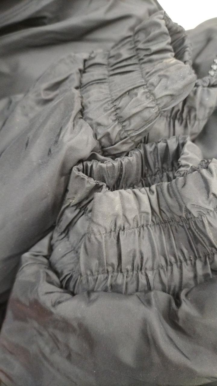袖口汚れ少々あります。口元ファンデーションのような汚れあります。リバーシブルなので2通り楽しめます。 |