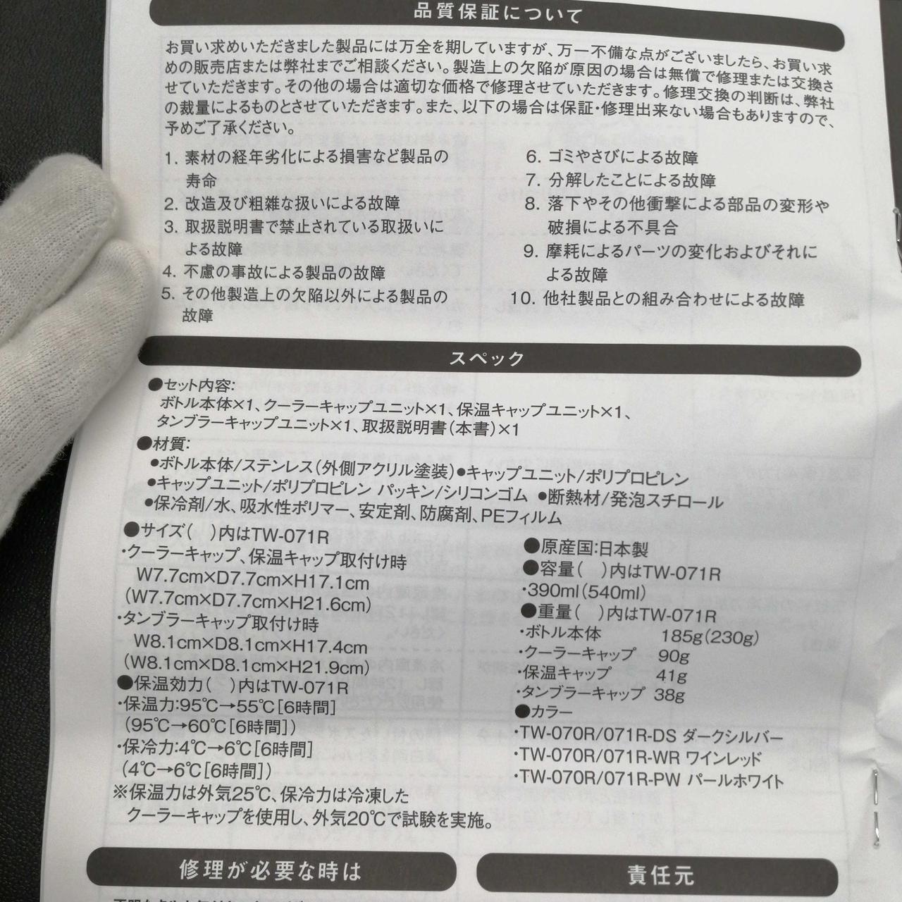 snowpeakの真空ボトル。