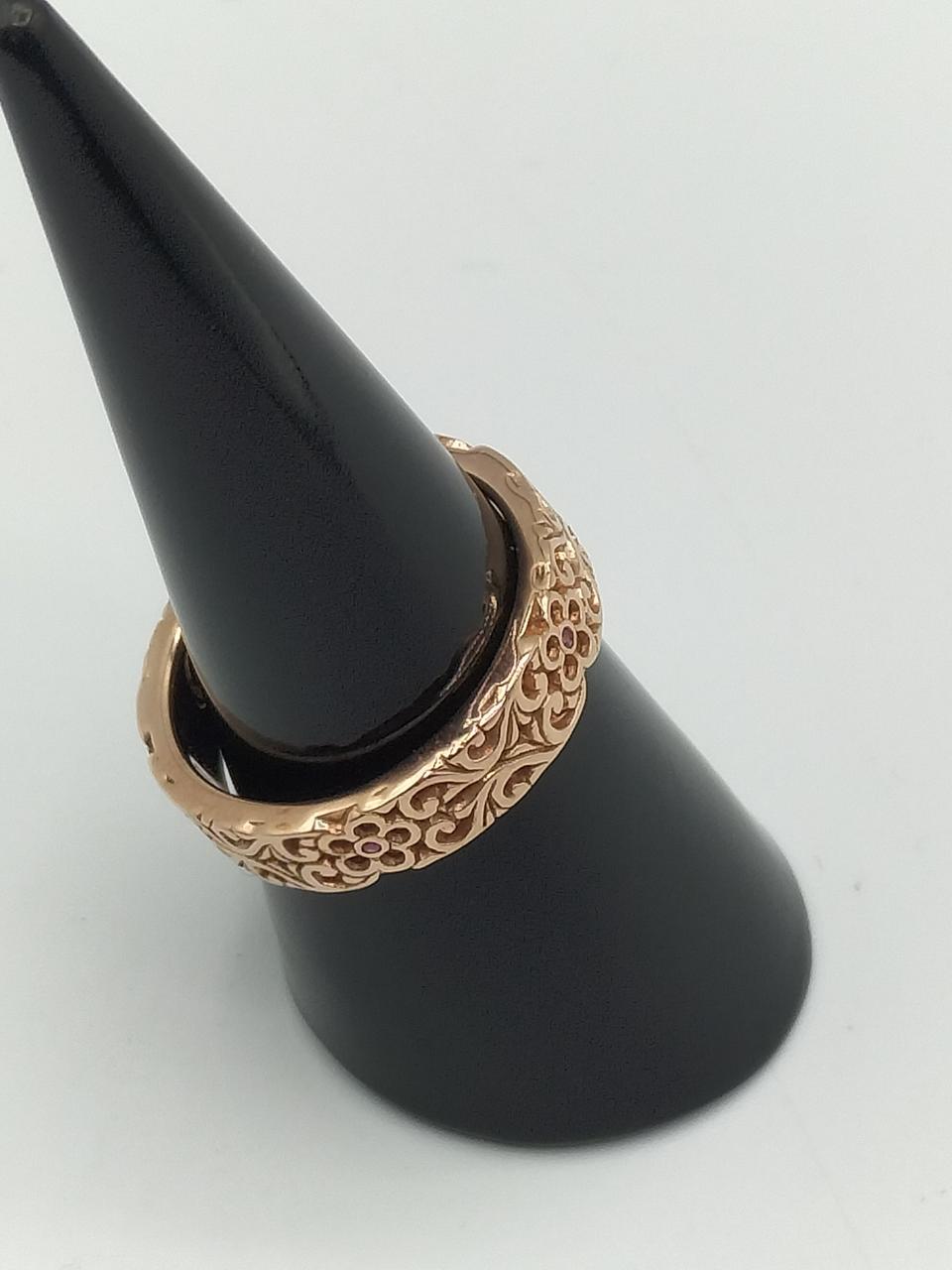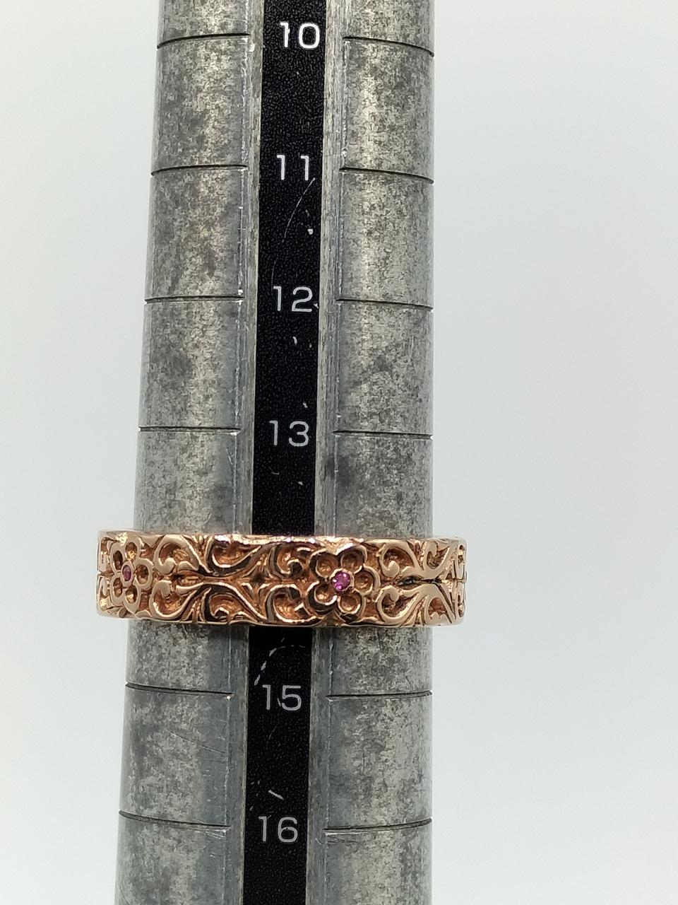 このリングは、植物のツタのような透かし彫り(オープンワーク)のデザインが特徴で、ローズゴールドのようなピンクコーティングを施ものや、銅製のもの、K10やK14ピンクゴールド製もの等あります。