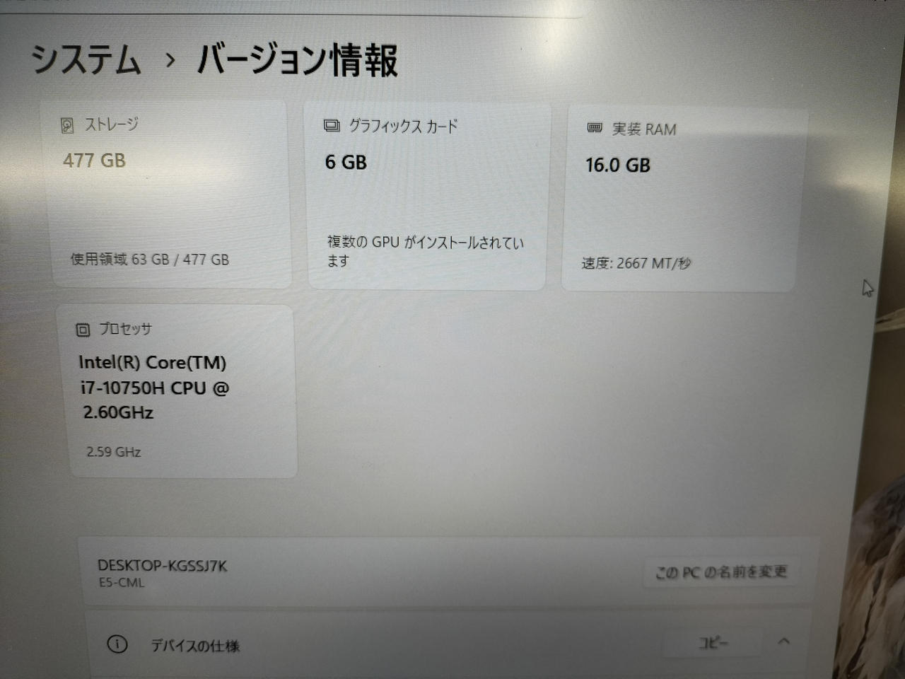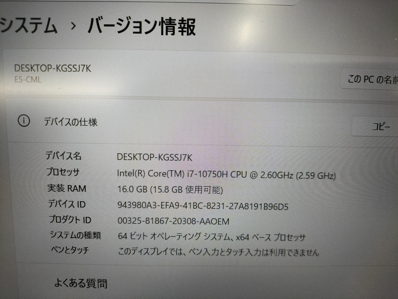 OS:Windows 11 Home 64bit CPU: Core i7 10750H@2.60GHz メモリ容量:16GB |