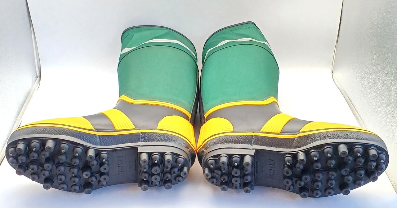 スパイク底は、それぞれ独立したピンが付いていますので丈夫に出来ています。スキー場などで多く使われています。