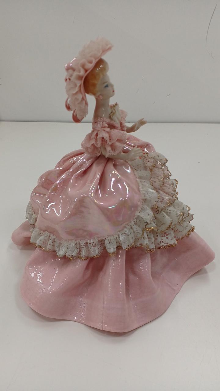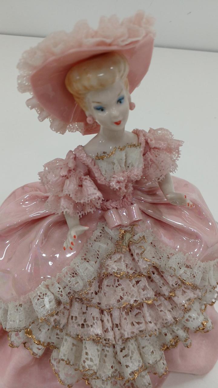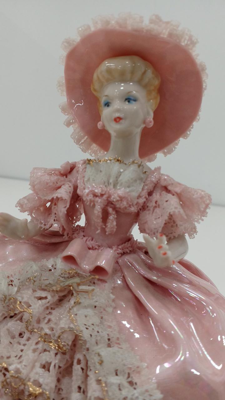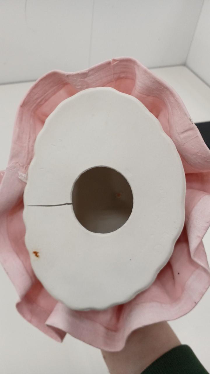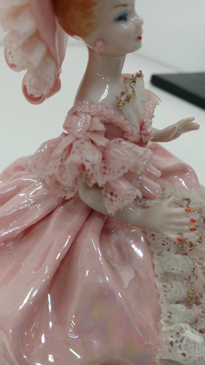 スカート内部の台座に割れ、右肩近くのレースに欠けがあります。写真をご確認下さい。