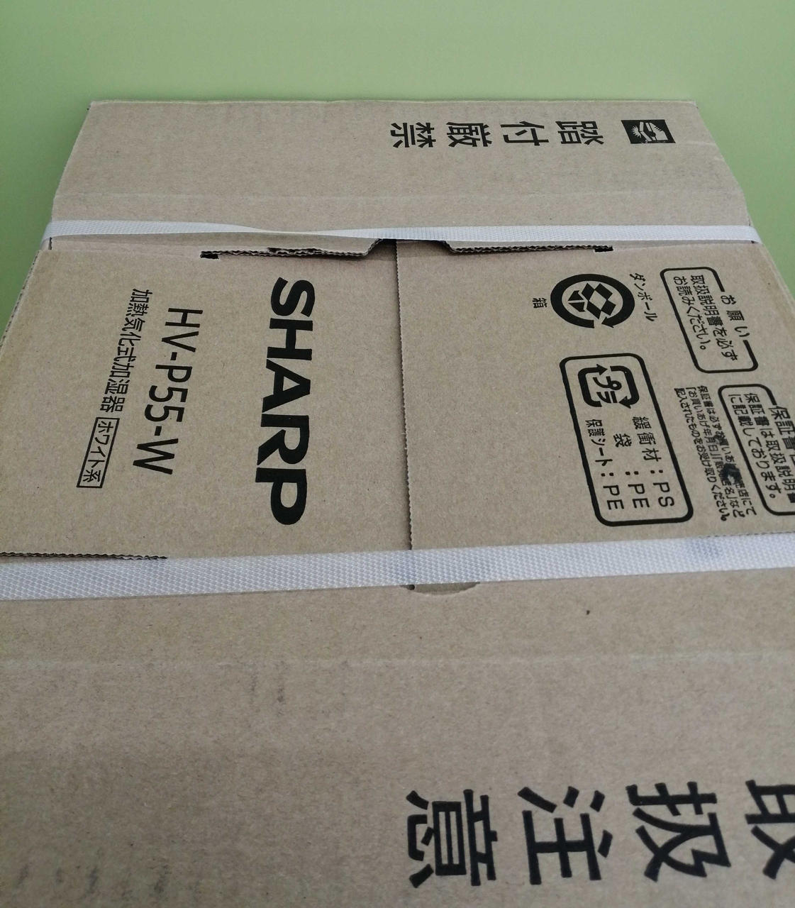 シャープ製気化式加湿器、結束バンドが付いたままの未開封品です。