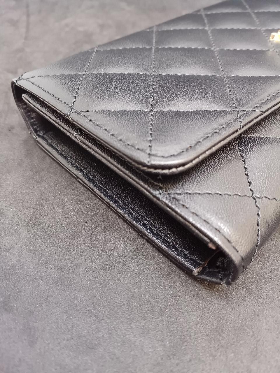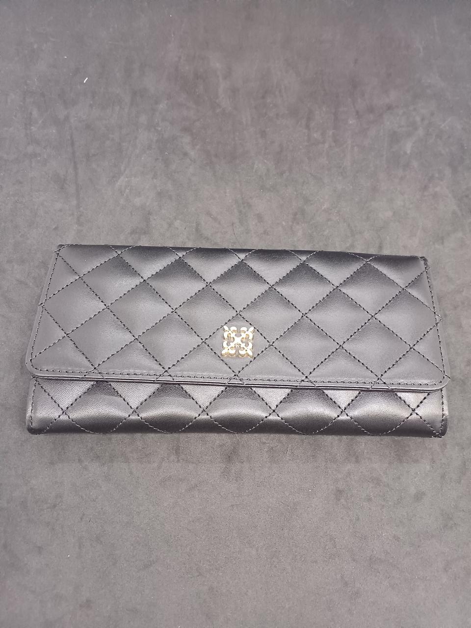 上品な艶感のあるレザーに、ふっくらしたキルティングステッチを施した長財布 |