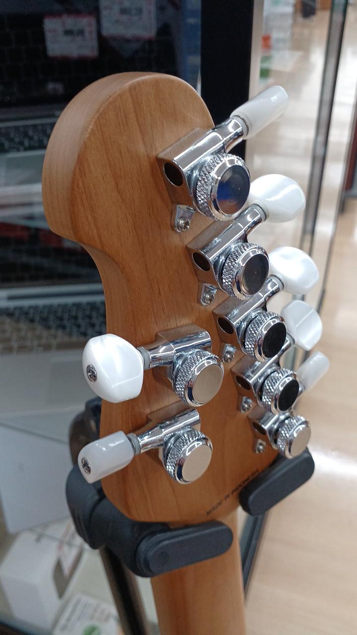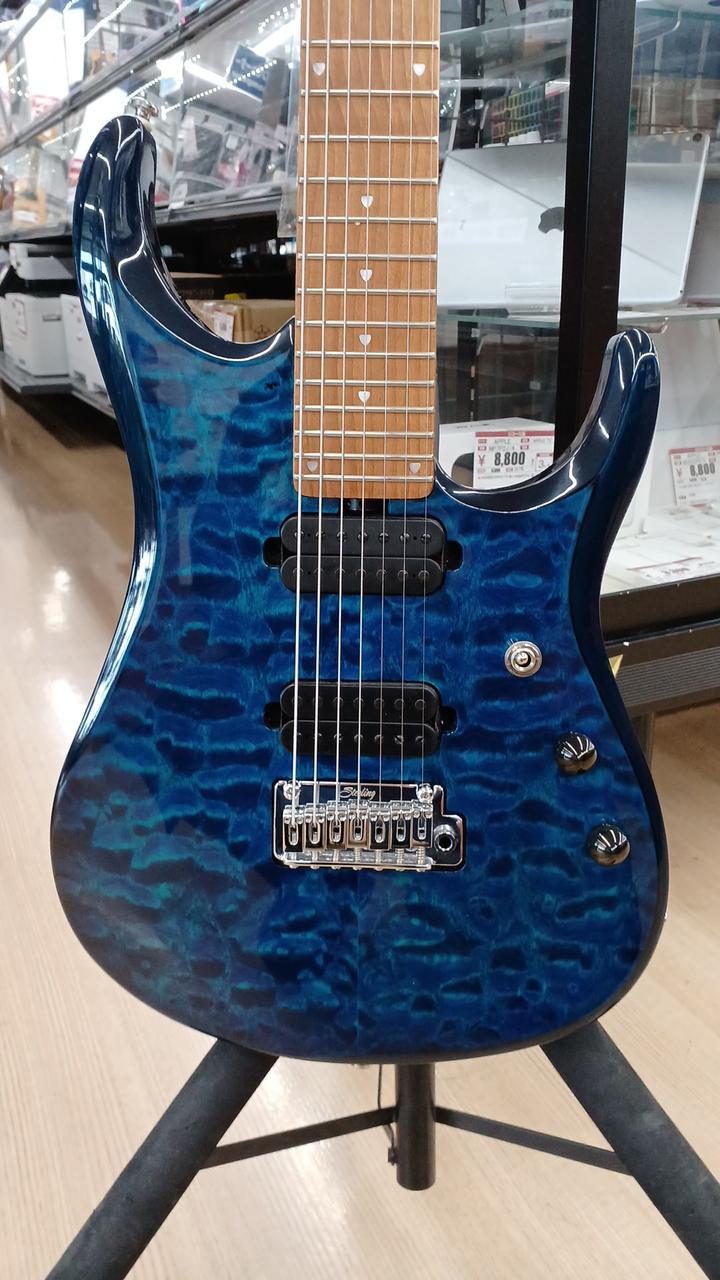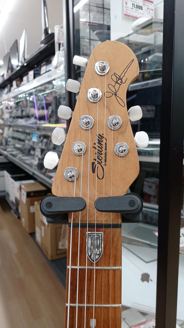 STERLING by MUSICMANのジョン・ペトル―シシグネチャー7弦モデル ボディ:キルテッドメイプル&アフリカンマホガニー ネック&指板:ローステッドメイプル24F ボリュームのPUSHで12dBのゲインブースト ロックペグ搭載 付属:ギグバッグ・アーム |