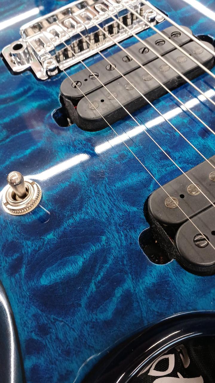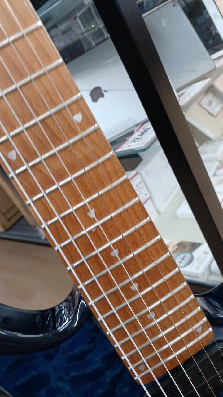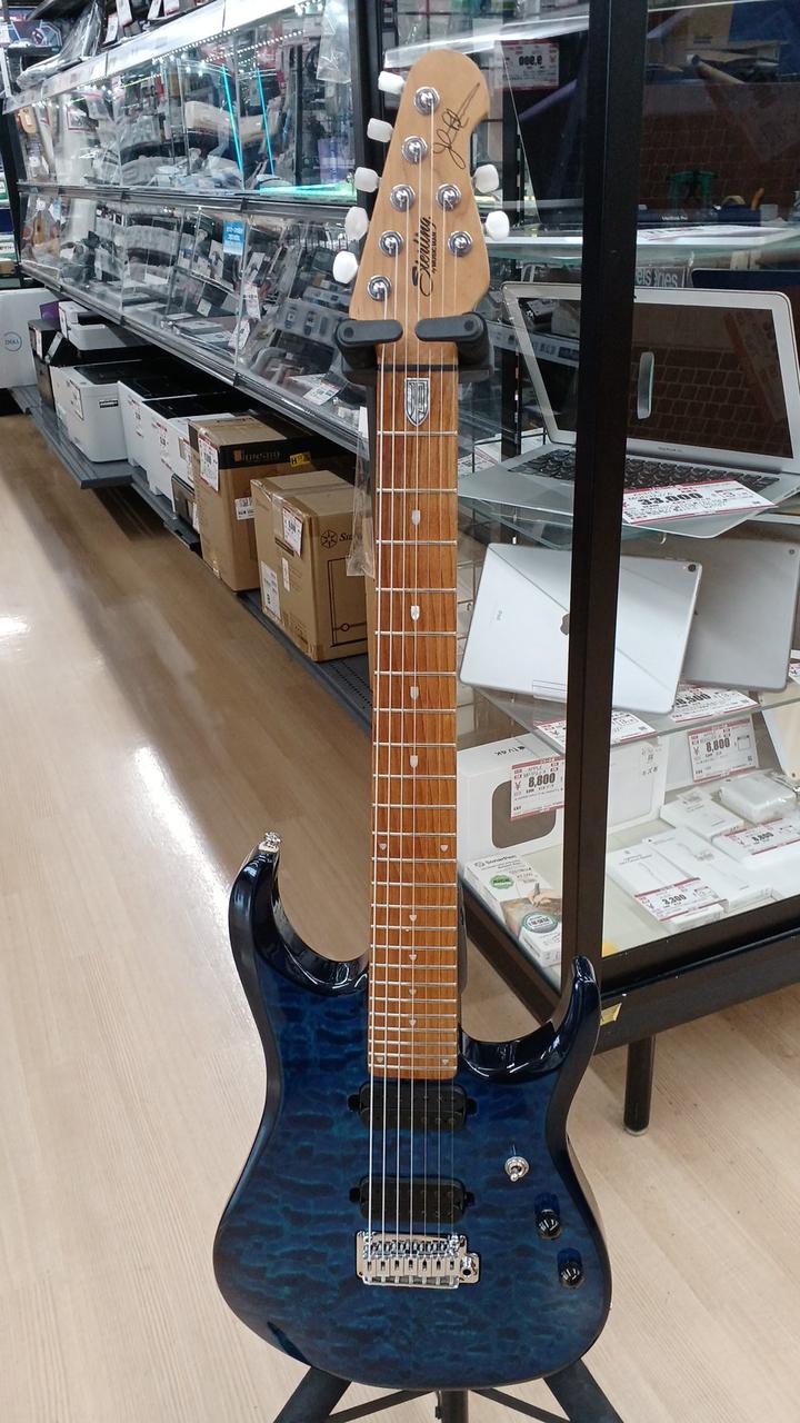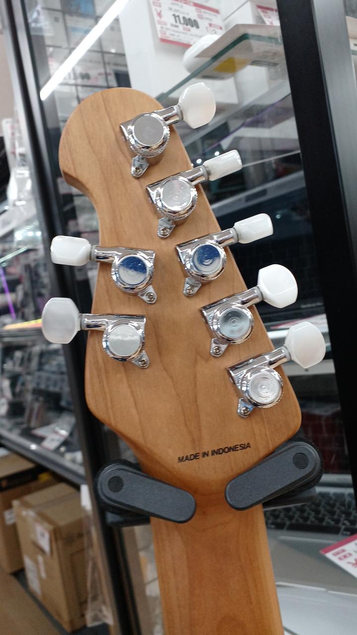 STERLING by MUSICMANのジョン・ペトル―シシグネチャー7弦モデル ボディ:キルテッドメイプル&アフリカンマホガニー ネック&指板:ローステッドメイプル24F ボリュームのPUSHで12dBのゲインブースト ロックペグ搭載 付属:ギグバッグ・アーム |