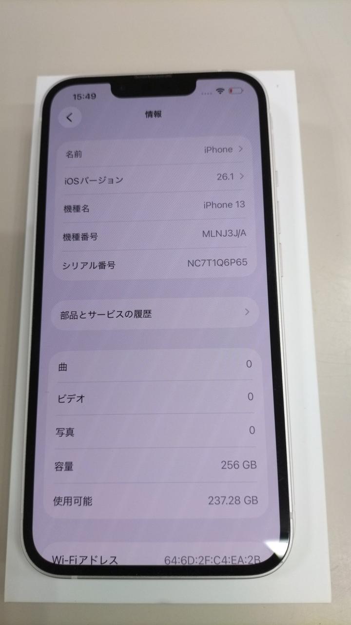 WIFI接続しました。IOS:26.1起動OK。バッテリ消耗している為、ジャンク扱いです。 |
