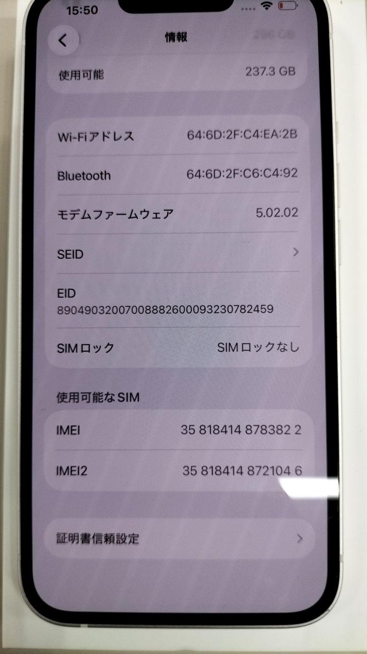IMEI判定は△です。IMEI:358184148783822。 |