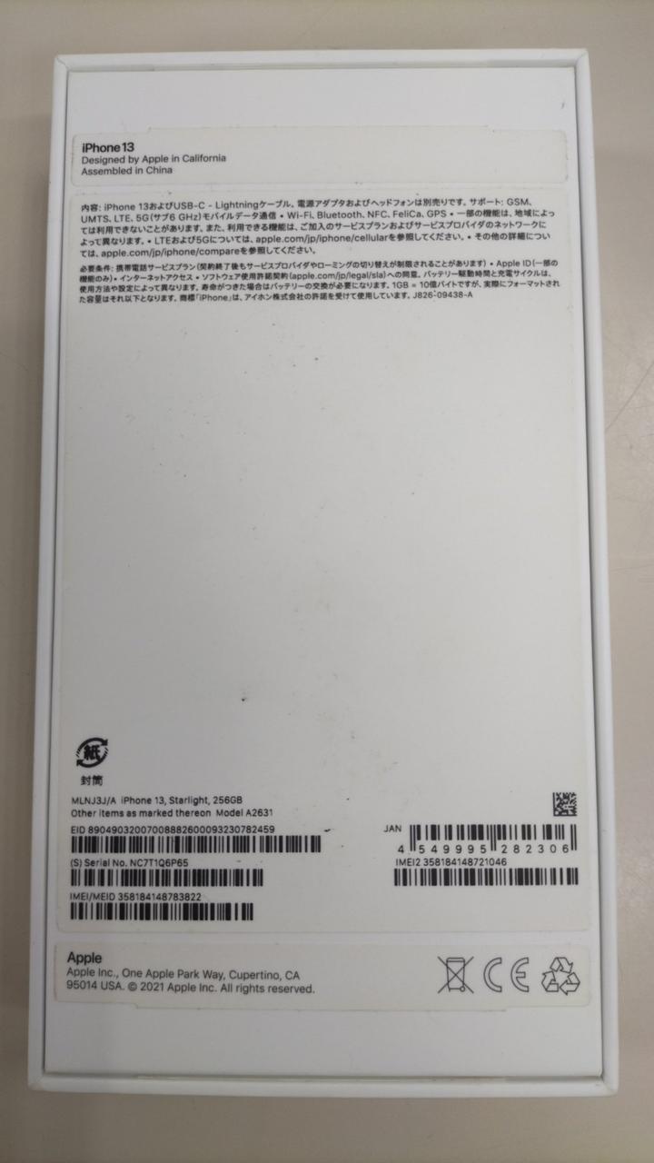 APPLE/AU IPHONE13 256GB MLNJ3J/A |