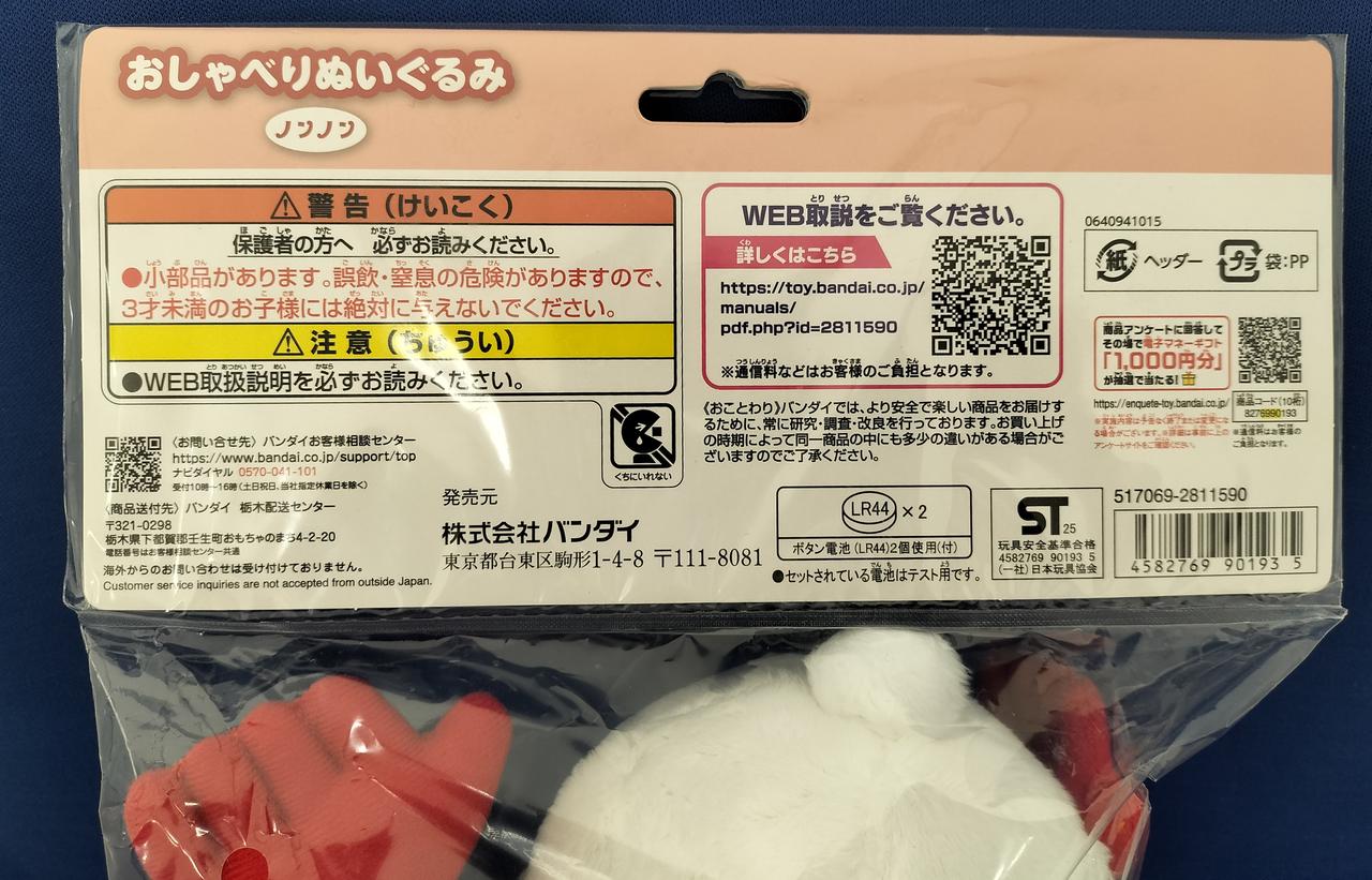型番:おしゃべりぬいぐるみ ノンノン